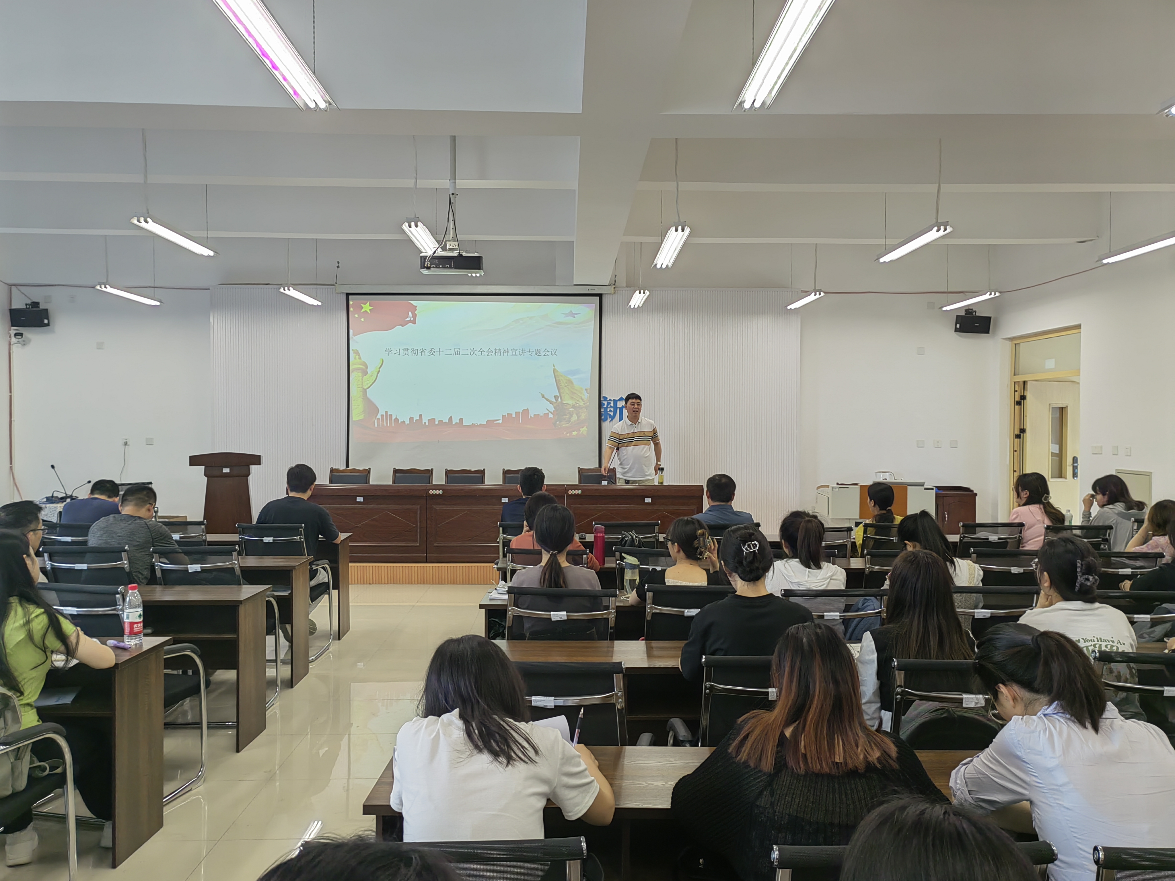唐德斌指出,省委十二届二次全会是在学习贯彻党的二十大精神的重要时刻、全面建设社会主义现代化四川开局起步的关键时期召开的一次十分重要的会议,全会深入贯彻党的二十大精神和习近平总书记对四川工作系列重要指示精神,从政治和全局的高度、实践和发展的深度,对谱写全面建设社会主义现代化国家四川发展新篇章作出系统谋划、全面部署,对标对表制定了四川方案、拿出了四川行动、深化了四川实践,意义重大而深远。就进一步学习宣传贯彻大会精神,唐德斌强调,学习好、宣传好、贯彻好省委全会精神,是当前和今后一个时期的重要政治任务,全院师生党员要提高政治站位,深刻把握全会重大意义,把学习宣传贯彻党的二十大精神和省委全会精神结合起来,切实把思想和行动统一到省委全会精神上,以咬定青山不放松的毅力和刨根问底的求知精神求索新的知识,争做新时代“四有好老师”,为奋力书写好中国式现代化的四川篇章贡献太阳成集团tyc234cc的智慧和力量。