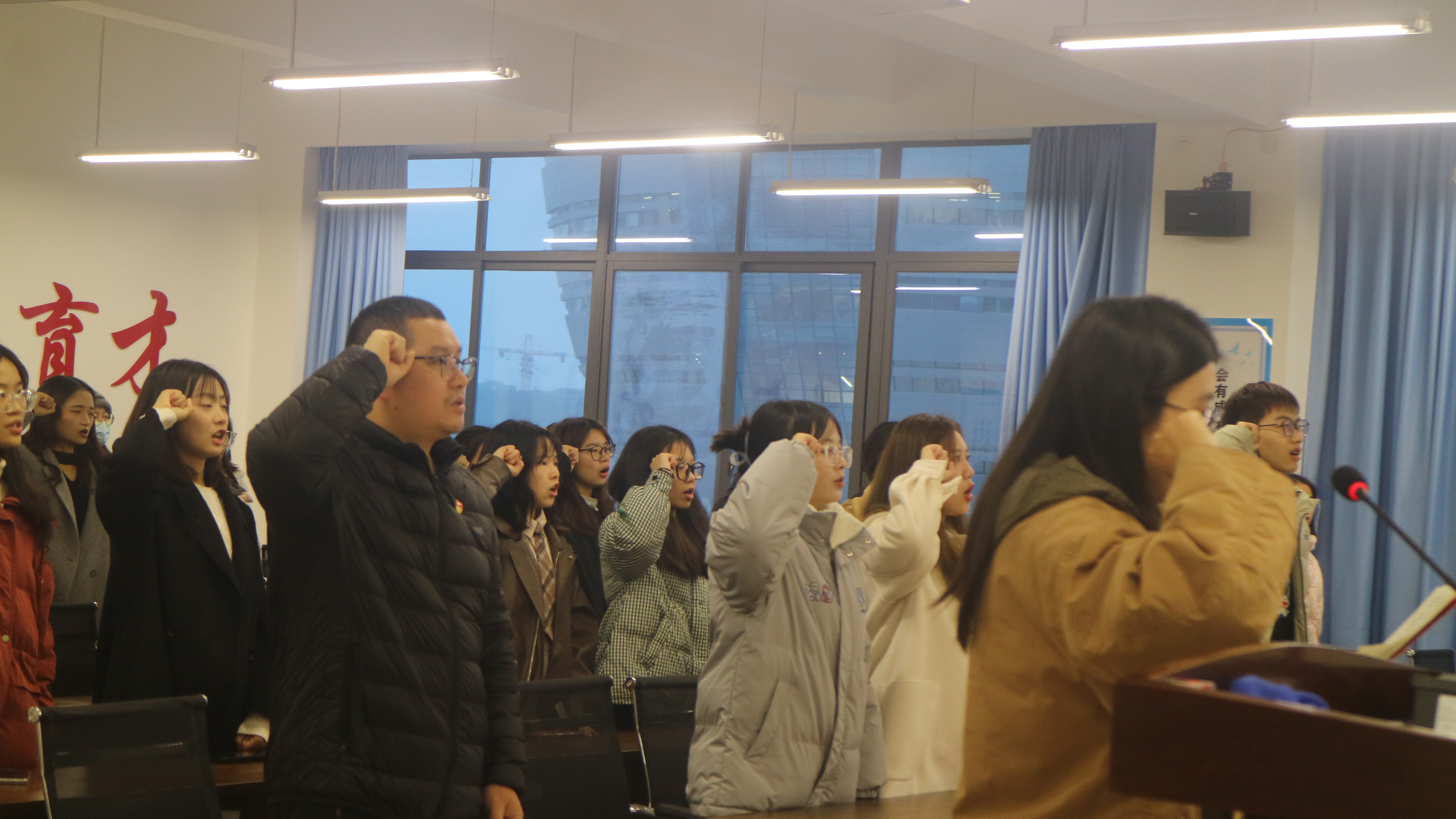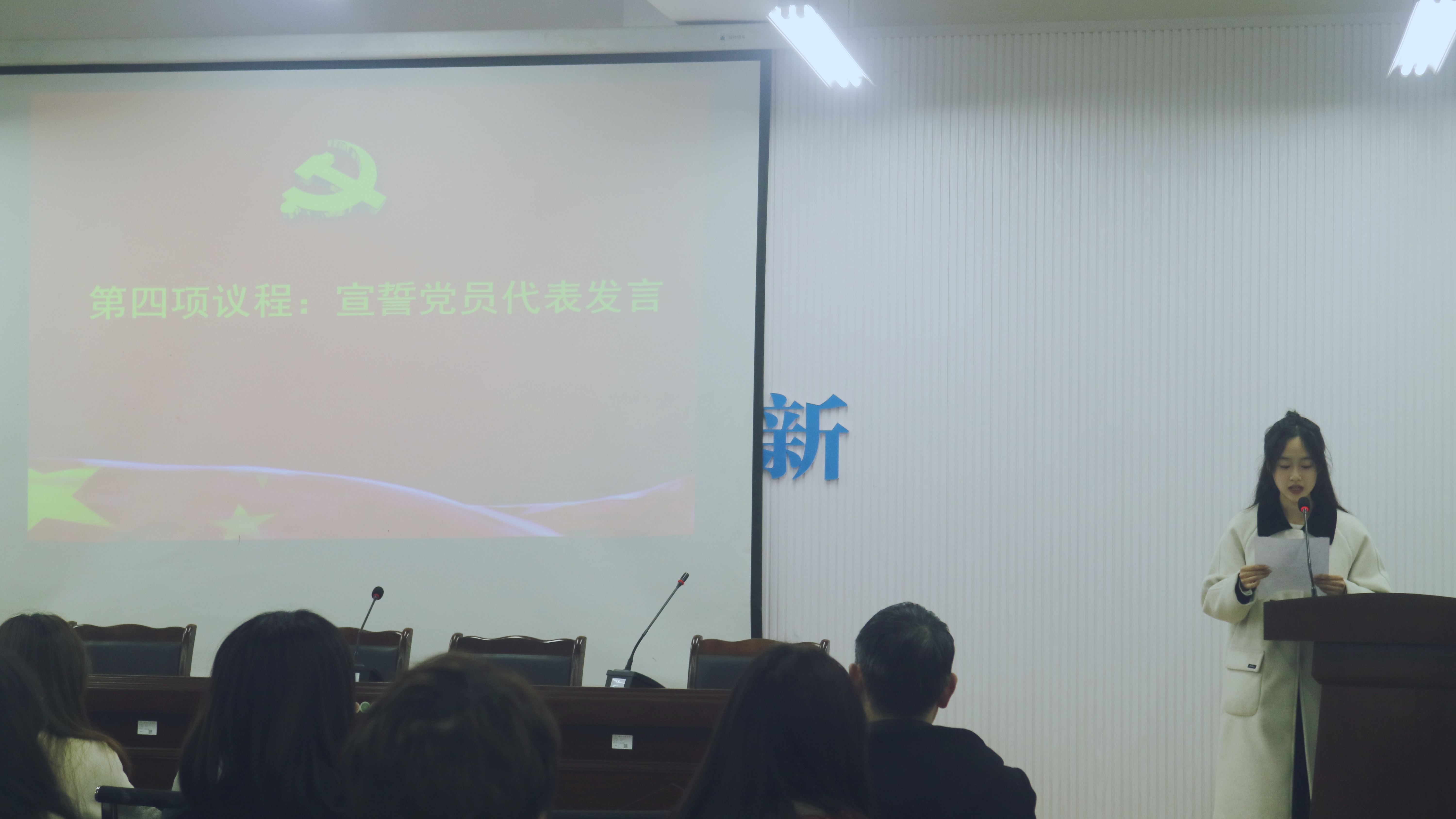 为了加强新发展党员的党性教育,强化老党员的党员意识,提高全体党员的思想政治素质,12月8日17:40,公司在弘文楼503隆重举行了预备党员和党员的宣誓仪式。此次仪式由公司党委委员曾乾辉主持,党委书记唐德斌出席并讲话。参加会议的还有员工支部书记、委员、全体党员、预备党员。