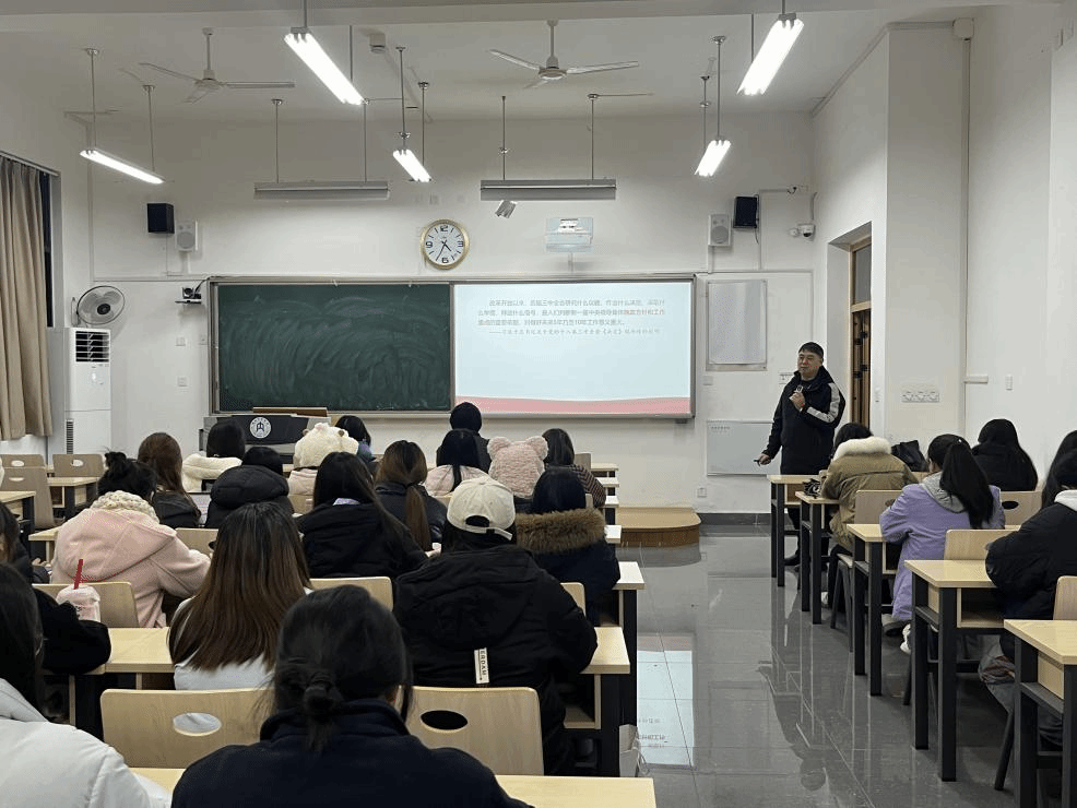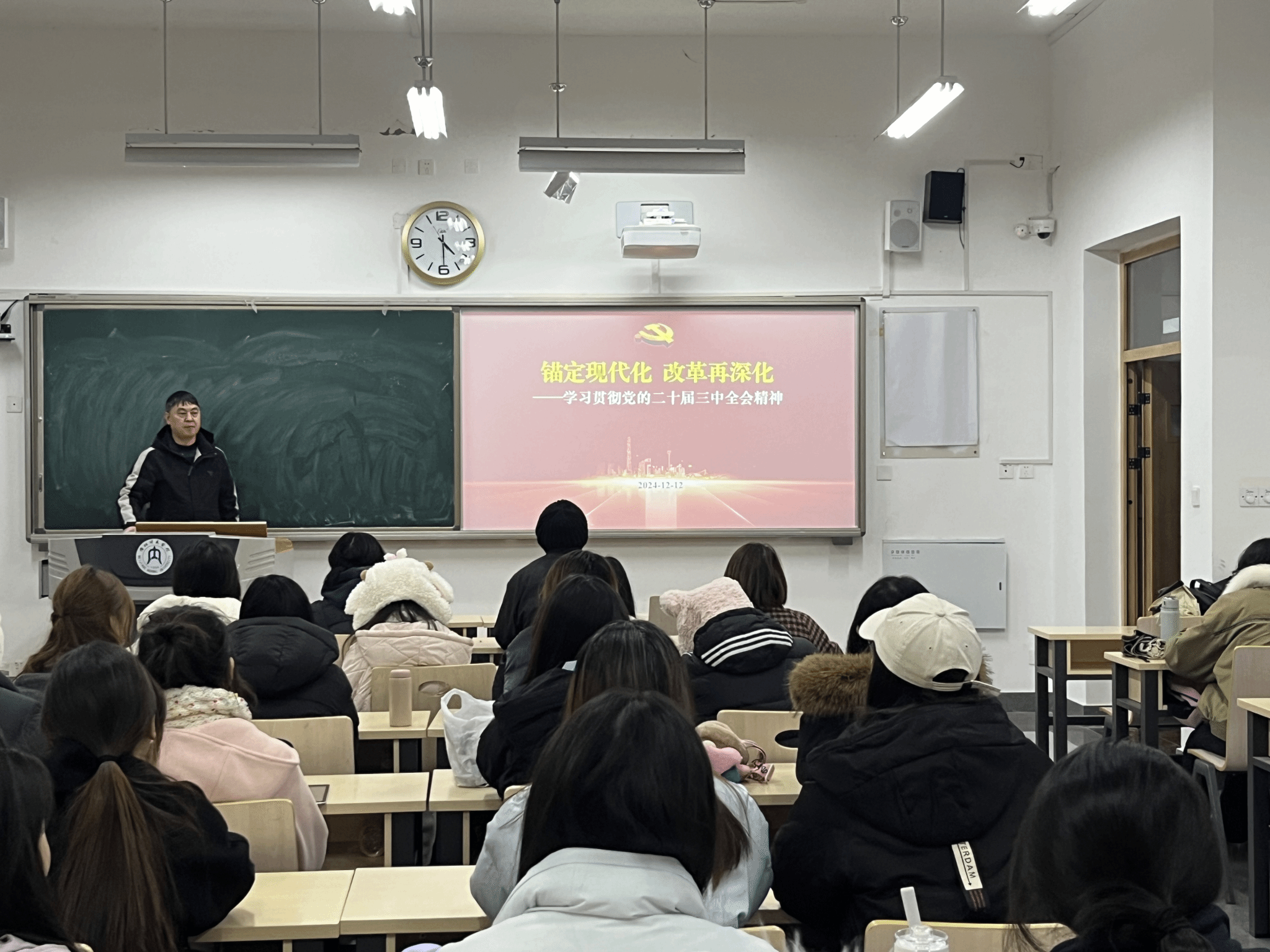 12月12日16:30,公司党委书记唐德斌在明德楼B113为联系班级(外22级3班)全体员工作“锚定现代化·改革再深化——学习贯彻党的二十届三中全会精神”主题宣讲。