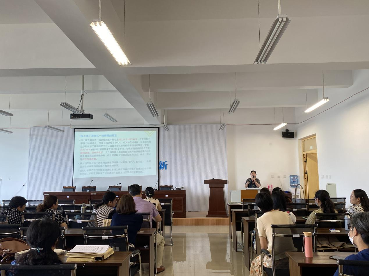 袁渊泉老师作为校级线上线下混合式一流课程《英语写作》的负责人,对《英语写作》的课程建设情况作了经验分享。她为大家介绍了校级一流课程的指标体系及认定标准、课程开展三学期以来的建设情况以及持续改进措施。结合《英语写作》的建设情况,袁老师重点讲解了课程团队、课程运行、课程内容、课程资源、课程模式以及课程评价六个方面的内容,为老师们一流课程的申报与建设提供了借鉴。