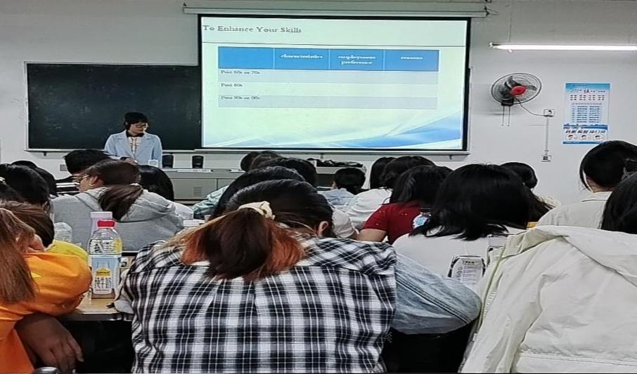 2022年5月9日上午8点,大学外语教研室部分教师在一教107教室观摩了太阳成集团tyc234cc新进教师周岚展示的一节大学英语课“A Journey Through the Odyssey Years”。她以一段视频导入课文,让员工结合视频内容回答“What are the odyssey years?” 然后结合课文内容与员工一起探讨了人生的不同阶段。 在进行课文内容讲解时,周老师先让员工根据课文内容比较过去和现在的年轻人有何差异, 然后让员工对比中国的80后和00后两代人在性格特征、就业倾向、兴趣爱好等方面的不同。最后以一段中国之青年的视频启迪在座的员工要向各个时代的优秀青年人学习,为中华民族的伟大复兴贡献自己的力量。