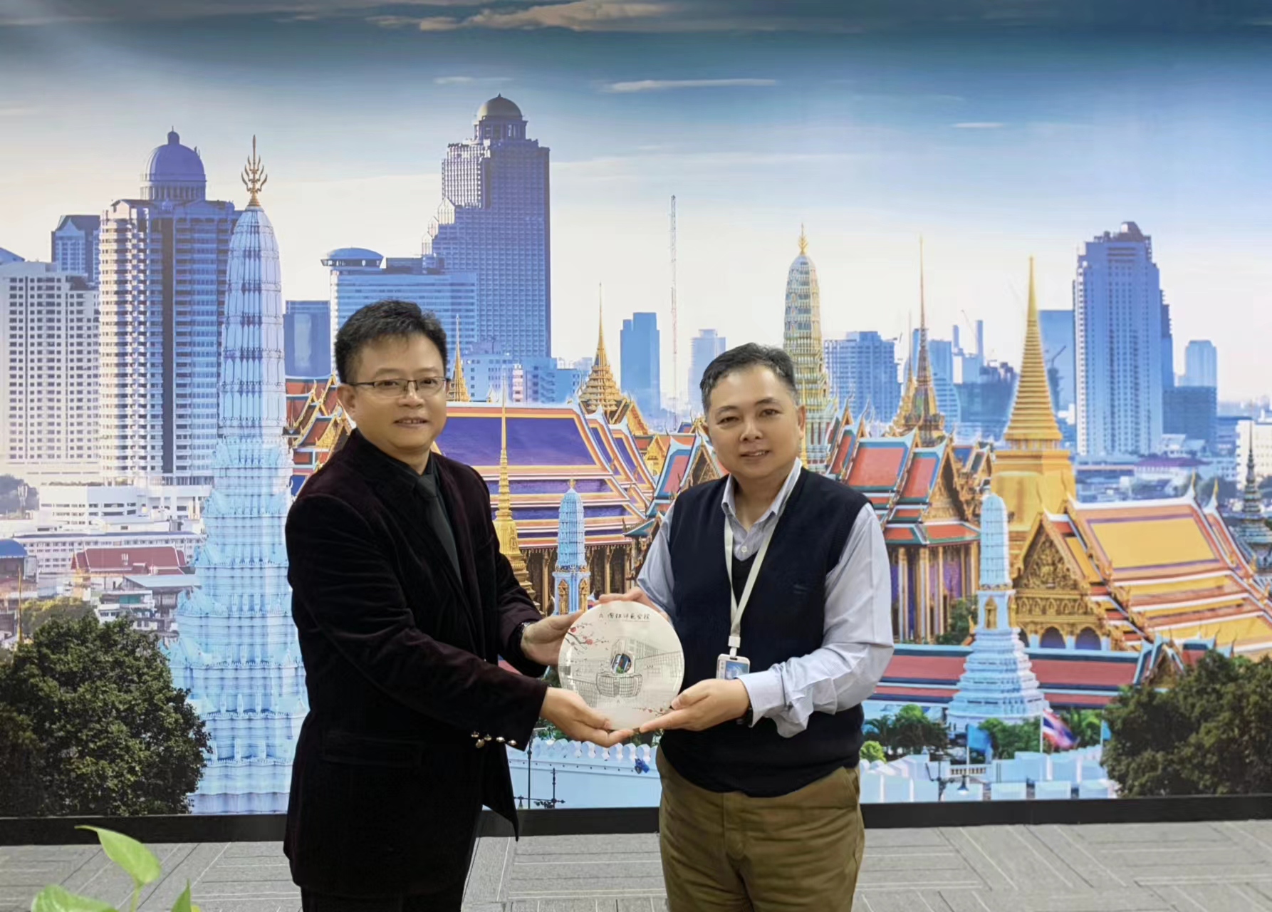 成都大学泰国教育与文化交流中心主任关国兴(Kiatkachatharn Chaphiporn)热情接待了调研小组,并介绍了交流中心的发展历程和成果。徐跃介绍了太阳成集团tyc234cc泰语专业的开办历程、专业规模、团队情况、课程体系、科研教研项目,并希望关国兴和团队在泰语实践教学基地建设、中泰高校员工联合培养、泰语专业员工考研和就业等方面提出建议。