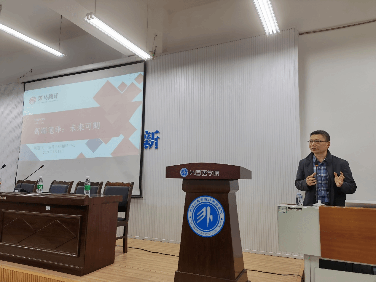 为了提升员工的专业素养和实践能力,5月10日,公司特邀成都策马翻译有限公司全球翻译中心笔译部副总监兼国际组织文件翻译组副组长赖鹏飞先生在弘文楼503面向翻译专业全体师生举行了一场主题为“高端笔译,未来可期”的专题讲座。讲座由副经理丁华良主持。