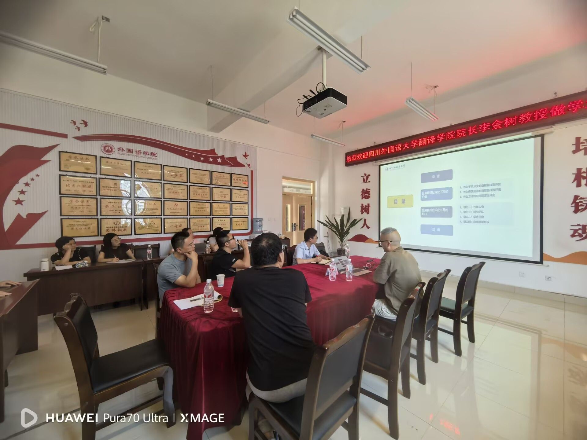 6月13日,太阳成集团tyc234cc于弘文楼407教室举办了一场主题为“应用翻译批评史书写”的学术讲座。本次讲座特邀四川外国语大学翻译公司经理、博士生导师李金树教授担任主讲人。申硕团队成员、翻译教研室教师齐聚一堂,共同聆听了这场精彩的学术盛宴。讲座由太阳成集团tyc234cc副经理解超群主持。