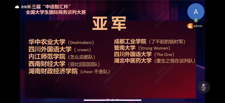本次大赛共分为10个分赛场,每个赛场有4支队伍,每赛场仅有一支队伍能够晋级冠亚争霸赛。在邓萍和陈英老师的精心指导下,公司何林月、谢家廷、刘艺佳、林海红四位队员组成的团队在前两轮比赛中以高分领先,成功晋级冠亚赛。在第二个比赛日的抽签中,公司代表队与四川外国语大学进行了最后的商务谈判比赛。