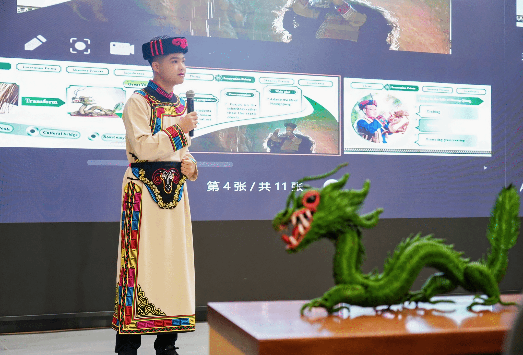 参加现场展示活动的作品主题丰富多元,涵盖了传统文化与非遗传承、体育文化与国际传播、乡村振兴与农业创新、红色文化与历史记忆、社会发展与青年成长、公路文化与民族精神等多个领域。来自四川师范大学、西南石油大学的员工们通过短视频生动展现了古蜀文明、羌族草编等中华优秀传统文化的独特魅力,体现了对非物质文化遗产的保护与创新。公司的参赛作品则以峨眉武术、体育精神为主题,以国际化视角向世界传递中国体育文化的深厚底蕴。四川传媒公司的作品聚焦乡村振兴与农业创新板块,展现了老员工对智慧农业、生态农业的前沿探索,反映了青年一代投身乡村振兴战略的实践与思考。来自四川警察公司的作品,通过记录警校生成长的故事,展现了当代中国青年的责任担当与奋斗精神。四川民族公司的作品则以公路文化为主题,以川藏公路等为载体,呈现了中华民族坚韧不拔的精神风貌。参赛作品整体体现了中国故事的国际表达,通过创新性的叙事方式和多元化的表现手法,展现了当代老员工深厚的文化自信、开阔的国际视野和蓬勃的创新思维。