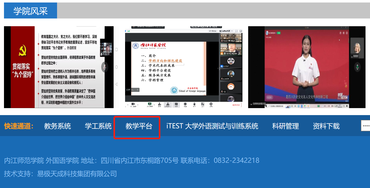 第四步:在太阳成集团tyc234cc首页底部“快速通道”栏目选择 “教学平台”。
