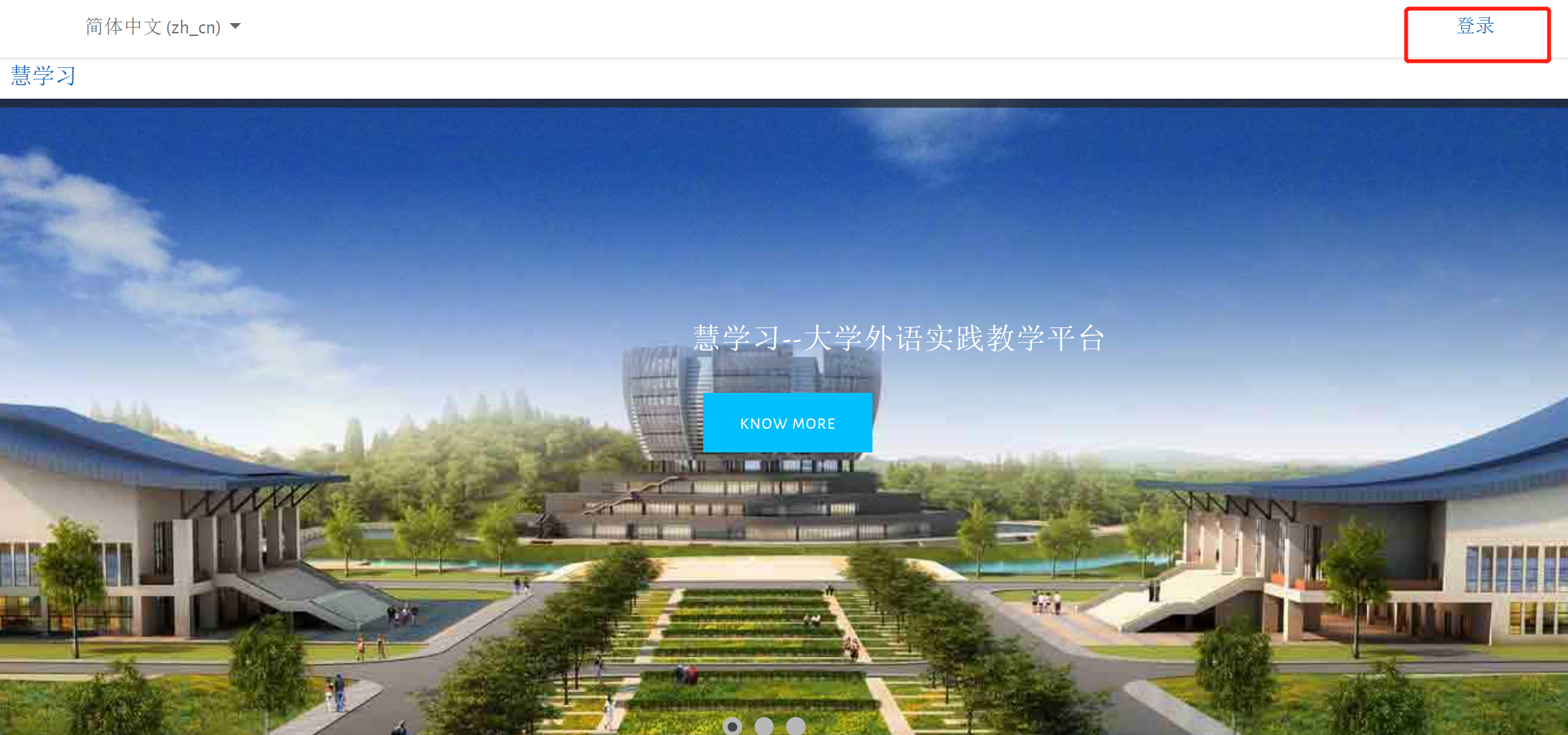 第五步:在打开的“慧学习”网页右上角点击“登陆”,输入用户名和密码后即可进行学习。用户名为学号,初始密码为学号后6位。初次登录需修改密码和完善个人信息(请务必填写常用邮箱和手机号码)。