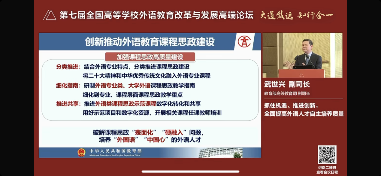此次论坛对落实高等公司外语公司产品创新、新文科背景下的外语学科发展、国际传播人才培养、新时代外语教师核心素养提升具有深远的指导意义。论坛不仅为公司的专业建设和发展提供了新思路,也为教师的教育教学指明了新方向,助力教师更加深刻地理解外语教育中的国家意识,践行讲好中国故事,传播好中国声音的外语教育使命。