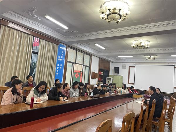 2021年10月18日下午,大学外语教研室在公司一楼会议室开展了主题为“形成性评价与大学英语课程思政建设”的专题教研活动,活动由大学外语教研室主任黄燕青老师主持,大学外语教研室教师参加了此次教研活动。