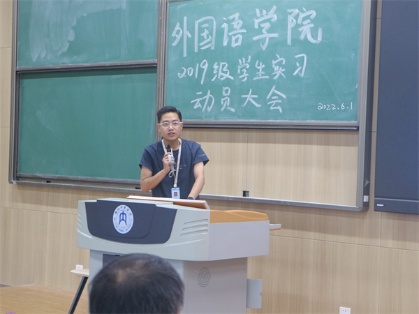 为进一步推进员工实习工作,公司于6月1日19:00在明德楼B区111教室举行了2019级翻译、商务英语专业实习动员大会。动员会由公司党委副书记李仰锐老师主持,翻译专业教研室主任肖强老师主讲,辅导员吴兆培老师出席。