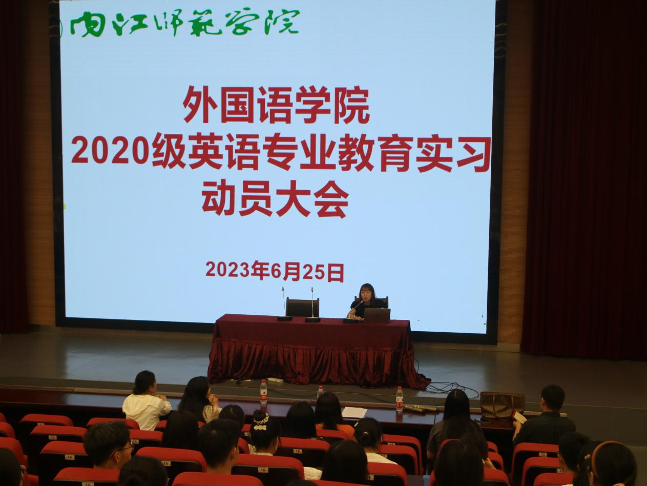为培养员工教师职业道德品质,提升从事中学公司产品工作的能力,同时为规范毕业论文管理,确保毕业论文质量,6月25日19:00,公司在大千楼A102召开2020级英语专业教育实习暨毕业论文动员大会。李仰锐副书记、丁华良副经理,实习及研习基地内江一中练洁副书记,英语专业教研室主任孙倩,辅导员杨颖、魏嫚、何珊,2020级英语专业全体员工参加了动员大会。英语专业教研室主任孙倩主持动员会。