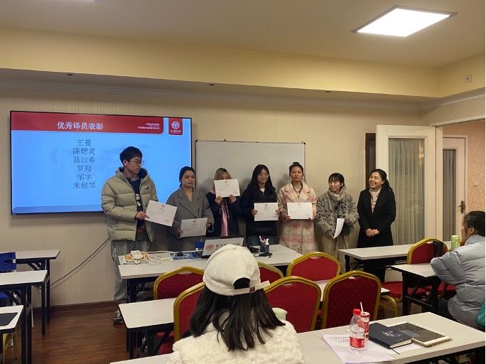 33名员工在策马翻译有限公司就汽车、知识产权专利、电力电气、文物考古、国际组织文件等领域进行稿件分析与翻译。12月15日,实训结业典礼上,各小组汇报实训期间所遇到的翻译难点并分享实训的感悟与收获。实训负责老师对同学们的学科素养、专业能力以及良好的实训表现给予高度赞善,并对每一小组的结业展示进行逐一点评。最后,根据实训表现,实训负责老师对王蔓等6位优秀译员颁发优秀译员证书,并勉励同学们坚持“译”心“译”意,不断提升翻译实践能力。