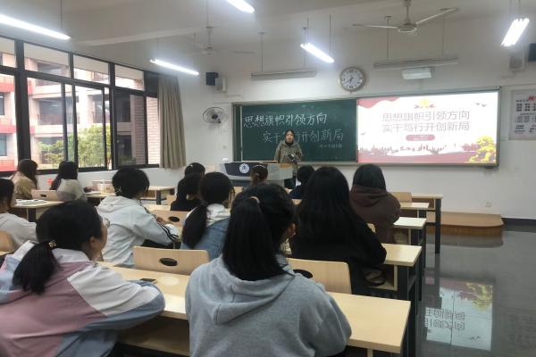 会议伊始,各班团支书带领大家重温入团誓词,唱团歌。随后,各班团支书带领同学观看视频《全面学习领会习近平新时代中国特色社会主义思想》、阅读文章《习近平对宣传思想文化工作作出重要指示强调 坚定文化自信秉持开放包容坚持守正创新 为全面建设社会主义现代化国家全面推进中华民族伟大复兴提供坚强思想保证强大精神力量有利文化条件》,让同学们学习感受习近平总书记的重要思想与殷切希望。最后,同学们积极分享了自己的学习感悟,纷纷表示作为新时代中国青年要不断提升内在动力,踔厉奋发,笃行不怠,不断锐意进取,争做有为青年,为实现中国式现代化和中华民族伟大复兴不懈奋斗!