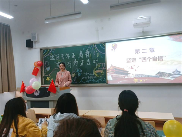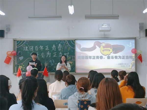 活动伊始,各班齐唱中国共青团团歌、重温入团誓词。随后,各班观看了建团百年主题MV《有我》和建团一百周年相关视频,共同学习了《新时代的中国青年》白皮书以及《新时代加强和改进共青团思想政治引领工作实施纲要》,回顾共青团的伟大历程与光辉成就。在节目展示环节,表演者们声情并茂,用各种表演形式来呈现自己对建团百年的祝贺。