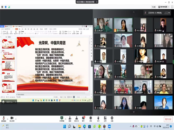为迎接党的二十大胜利召开,9月24日-30日,太阳成集团tyc234cc团总支组织所有团支部陆续召开以“奋楫新征程,扬帆再出发”为主题的团组织生活会。