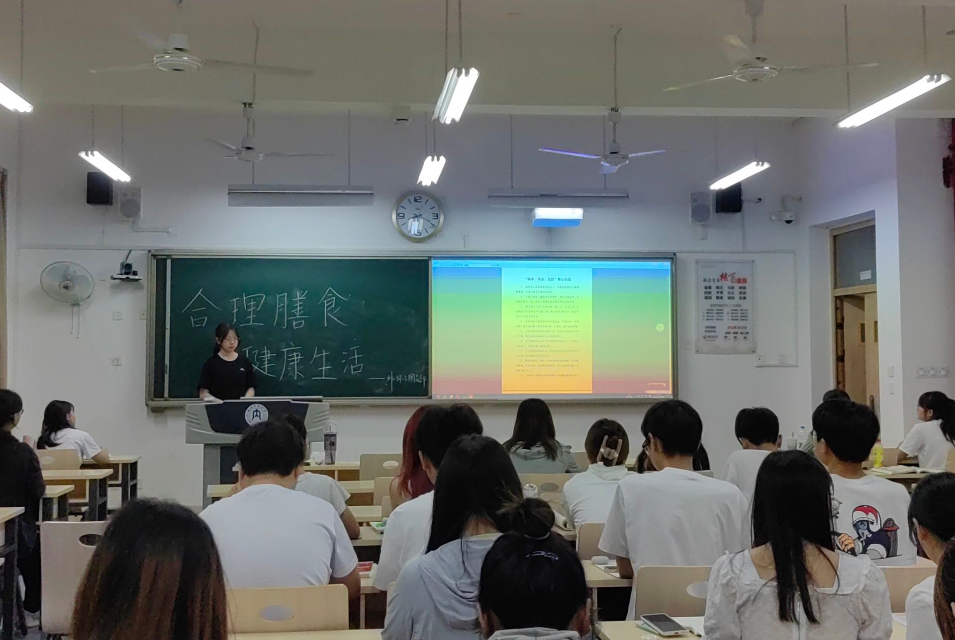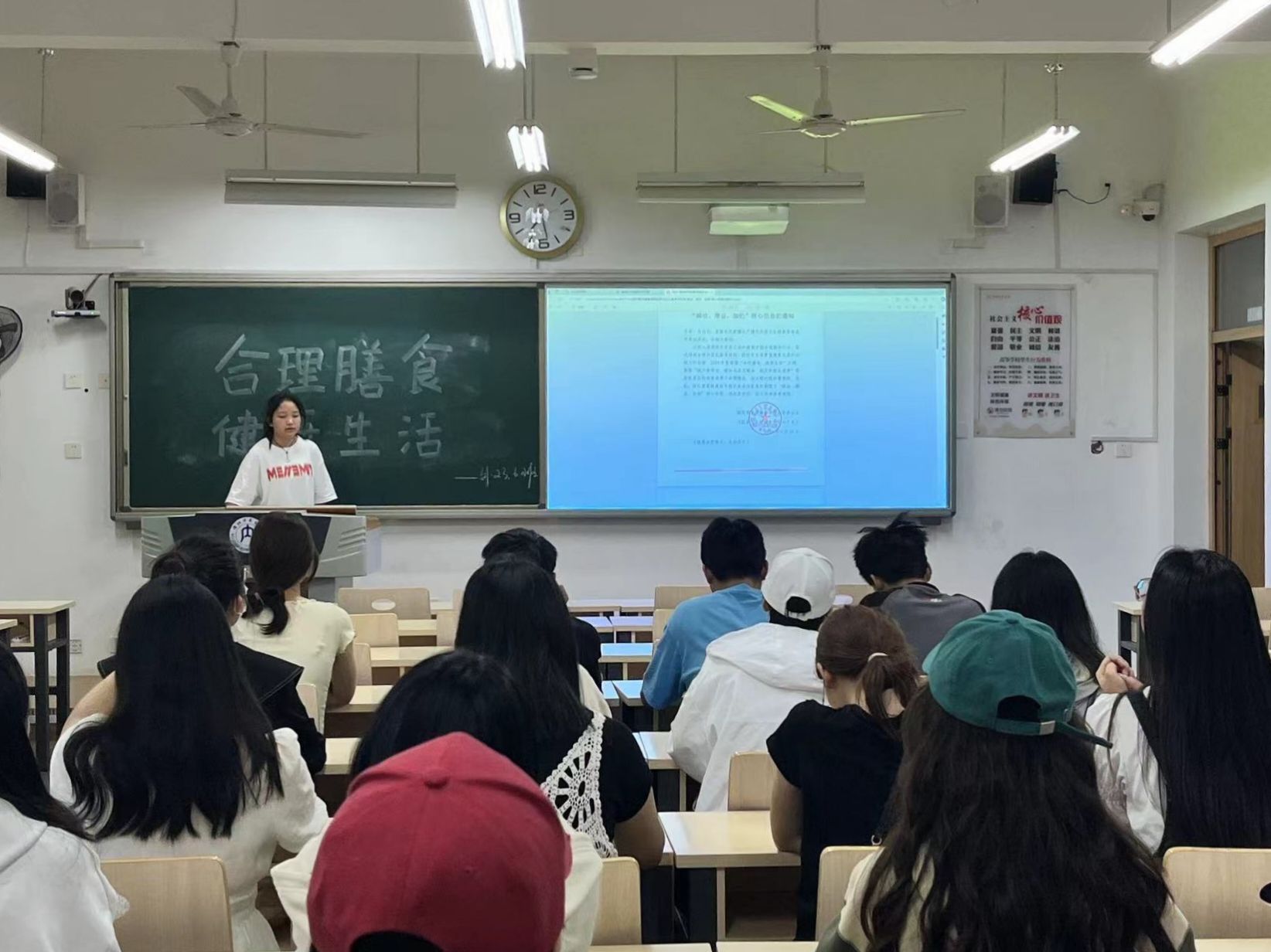 为更好地开展2024年全民营养周暨“5.20”中国员工营养日主题宣传活动,引导同学们养成科学合理的饮食习惯。5月18日,在各班团支部书记的带领下,公司在明德楼开展了以“合理膳食,健康生活”为主题的班会,公司全体同学参与本次班会。