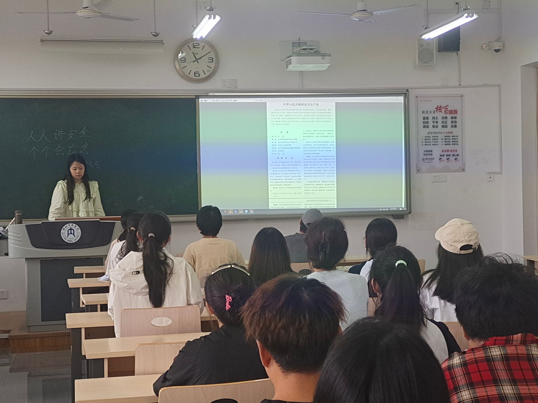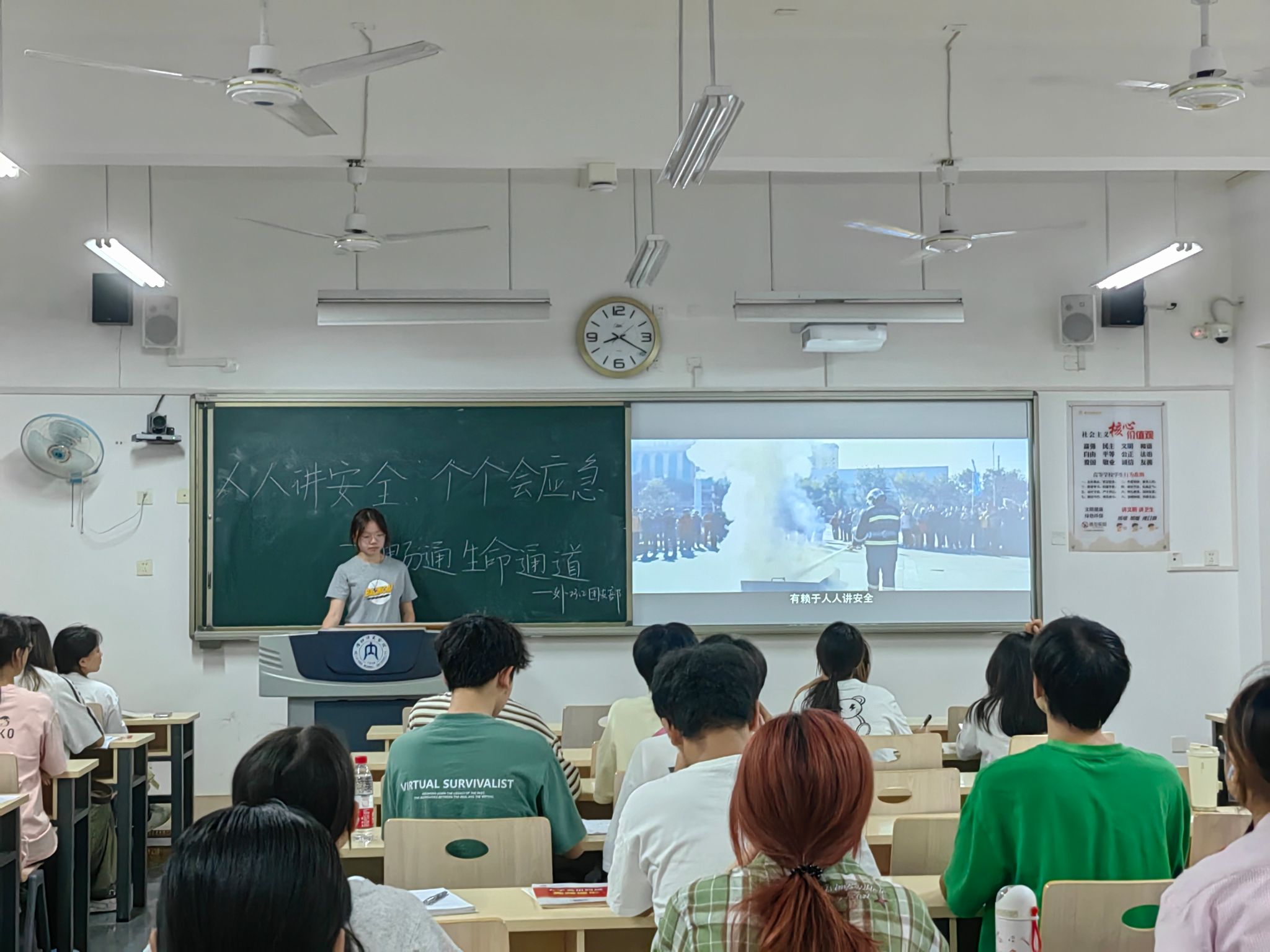 为了增强同学们的应急意识,提升校园安全风险隐患排查治理成效,6月4日,公司在明德楼开展了以“安全生产月”为主题的班会,公司全体同学参与本次班会。