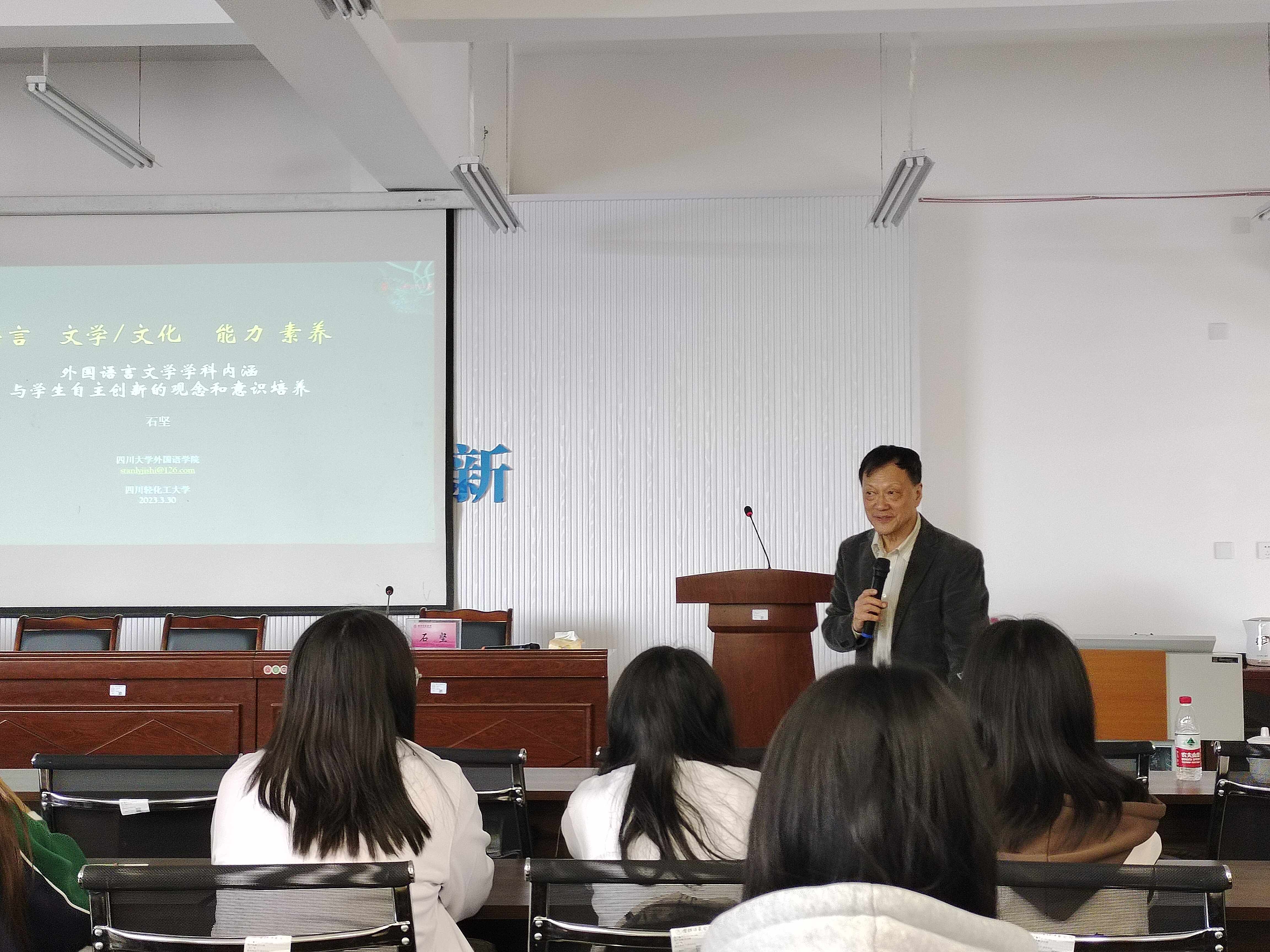 3月31日16:30,在弘文楼503会议室,四川大学原副董事长、博士生导师石坚教授作了题为“外国语言文学学科内涵与员工自主创新的观念和意识培养”的专题讲座,讲座由公司党委副书记李仰锐主持。