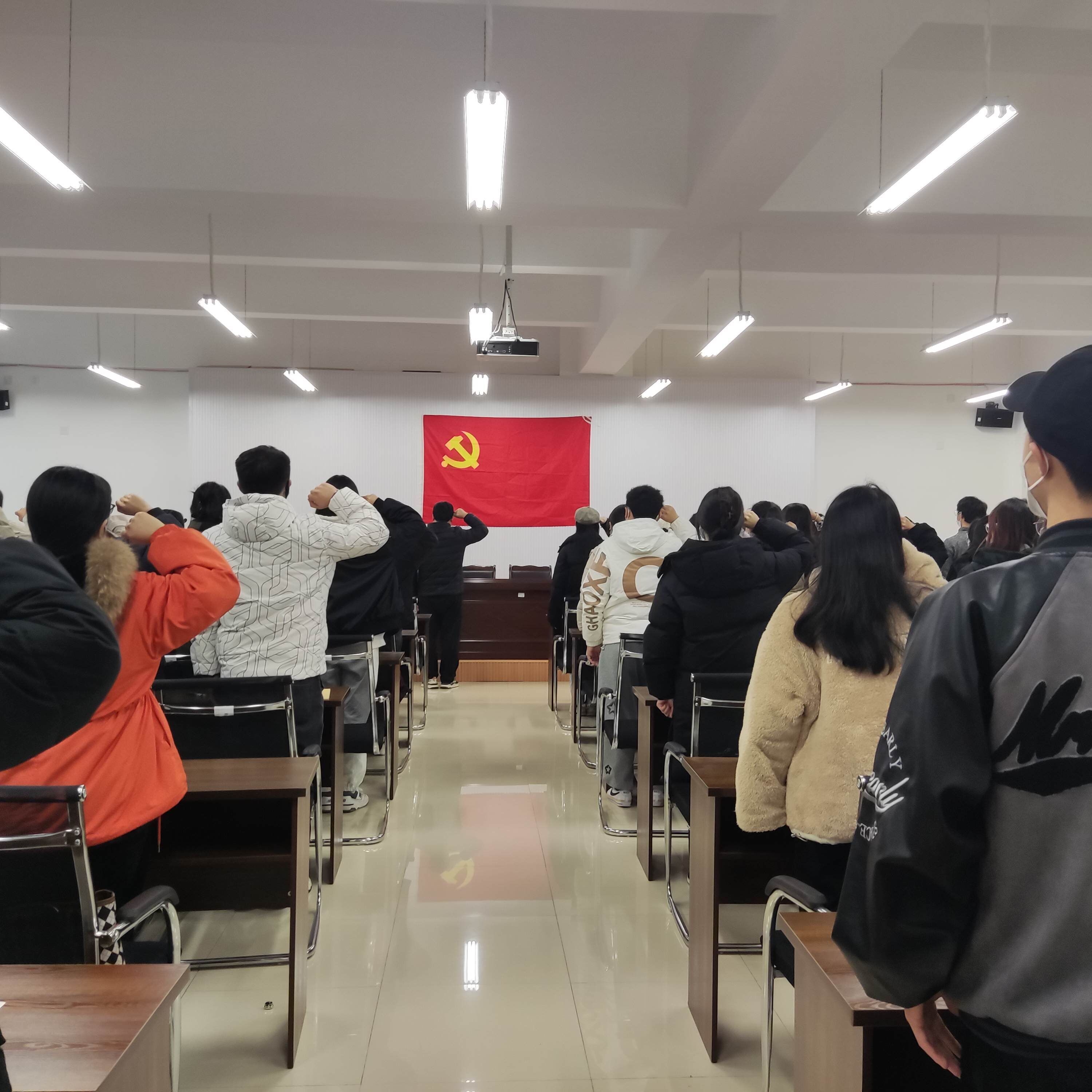 2022年12月9日19:00,公司在弘文楼503进行了新党员入党宣誓及老党员重温誓词仪式,党委副书记李仰锐主持大会,各支部书记、全体党员预备党员参加大会,实习的党员同志在线参会。