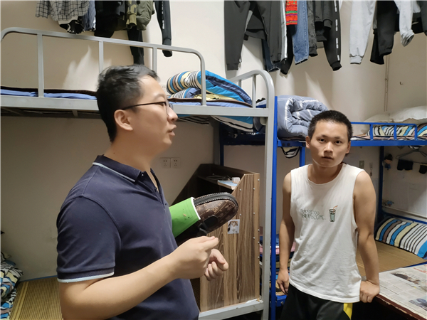 为了进一步了解同学们的生活情况,督促同学们做好寝室卫生和安全防护工作,2021年6月15日21:00,太阳成集团tyc234cc学工办主任曾乾辉,学工办吴兆培、何珊、杨颖、苟章艳老师以及员工会全体成员到员工宿舍检查卫生。