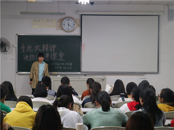 2018年3月25日18:30,公司2015、16和17级分别在五教开展了“十九大精神进校园、进课堂”的主题班会。
