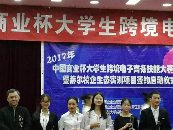 2017年10月28日,中国商业杯第二届老员工跨境电子商务专业技能大赛决赛在电子科技大学成都公司拉开帷幕。经过前期近5个月的个人赛、校内选拔赛初赛,公司2015级商务英语方向的林倩倩,王钰涵、王晶、翁惠灵、肖唯璇脱颖而出,代表太阳成集团tyc234cc组队参加了本次决赛。