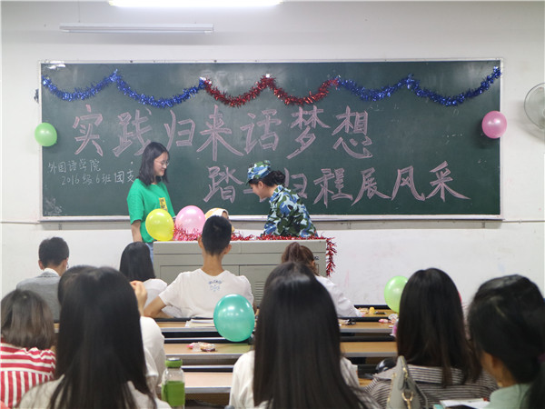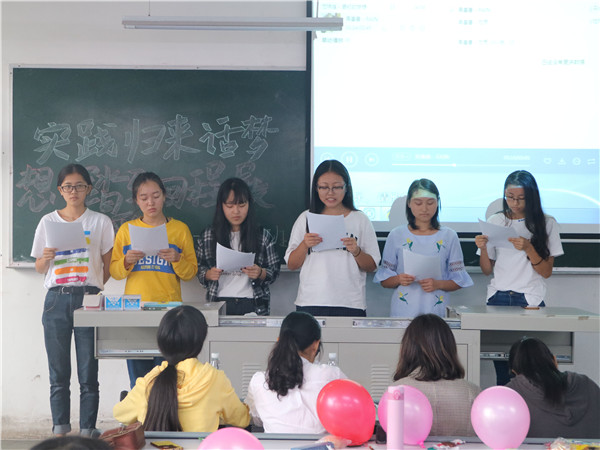 为使同学们坚定理想信念,积极参与社会实践并从中学习新知识,感悟实践的真正意义,9月28日12:30,公司16级各班在第一教学楼开展了以“实践归来话梦想”为主题的班会。