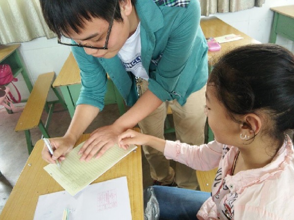 上午8点,志愿者准时来到教室开始一天的课程任务。志愿者们通过趣味教学的方法,将语文、数学、英语、手工、等知识分享给员工们。语文课的主要内容是有关“梅花魂”的短文阅读;数学课是分数,小数的基本运算;英语课是对26个英语字母的认识,发音,拼写;手工课是“樱花”折纸。一问一答,建立了一份双向的浓浓的师生。课间休息时,志愿者们与孩子们一起跳“小苹果”操和他们的自编彝族舞。下午2点到4点是作业辅导时间,每一个志愿者都负责几个员工,在他们有问题时及时作出解答。做一个小时的作业后,就放一些视频,这样既缓解了员工们的疲劳,又拓展了知识面。放学后,志愿者们送员工到校门口,员工们都礼貌的跟支教老师们道别,当然,志愿者也提醒孩子们要注意安全。
