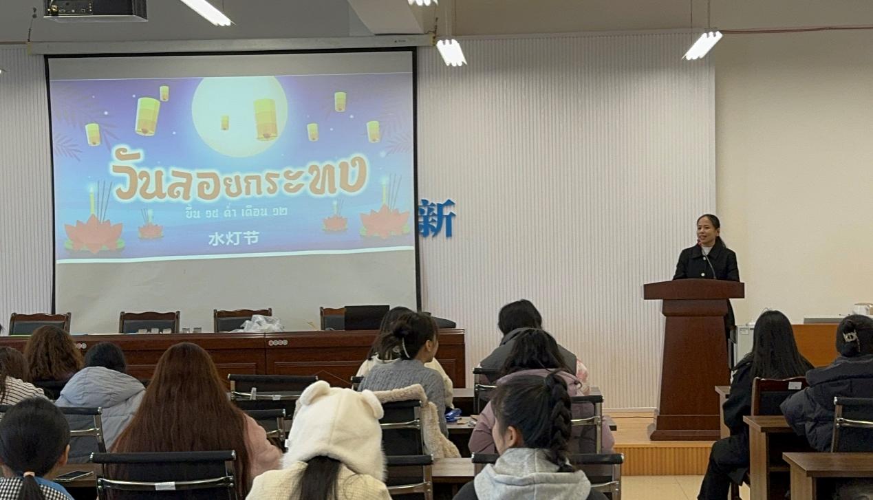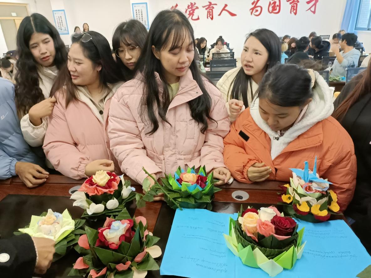 为了提高泰语专业员工对泰国文化的兴趣和提升对泰国文化的了解,2023年12月1日,泰语专业在弘文楼503组织开展水灯制作实践教学活动。泰语专业全体师生和泰国职工参加本次活动。活动由他语种教研室主任张文主持。