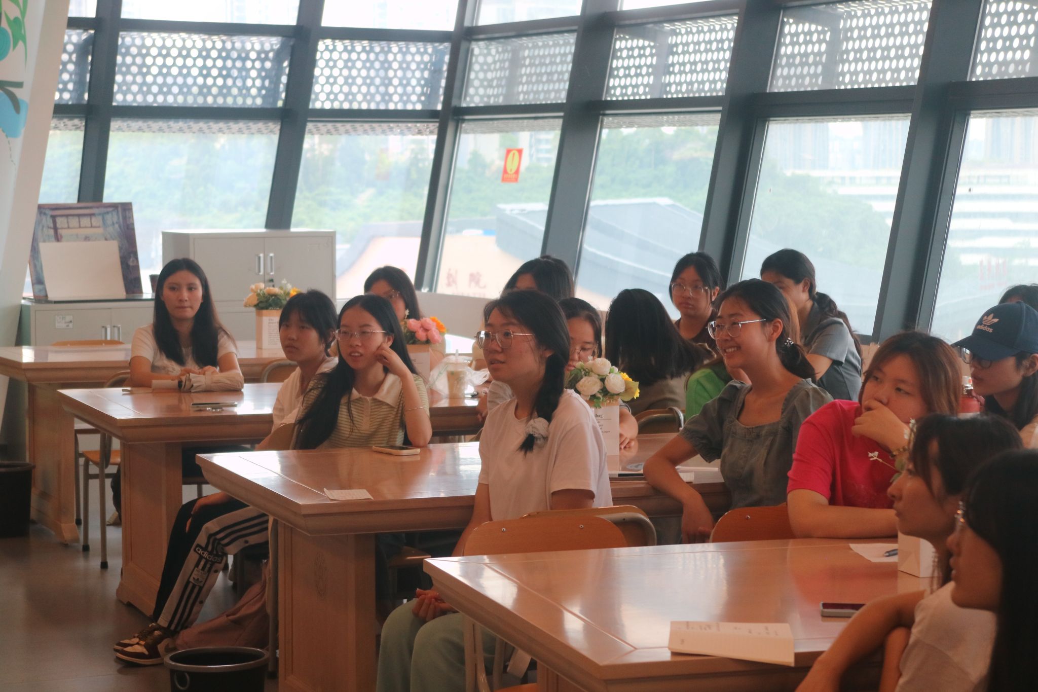 活动伊始,许丹简要介绍了澳大利亚制片人朗达·拜恩撰写的心灵励志书籍《秘密》以及该书的主题“吸引力法则”。作者提出,人的思想能够发出一种能量频率,吸引相似的思想和事物发生。这一理念源于古代哲学、宗教和文学的诸多理论,并被现代的成功人士所实践。许丹老师提醒使用吸引力法则要注意四点:第一,描述目标要足够详细。第二,要转变限制性信念。第三,要保持正面情绪,特别是感恩。第四,要保持耐心,付出行动。同学们对此纷纷点头表示认同。紧接着,许丹老师列举出东西方哲学中关于人类意识具有强大创造力的观点,并借用“观察者效应”、“波粒二象性”和“量子纠缠”等科学现象来证实。最后向同学们提问:“大家怎么理解王阳明的‘知行合一’?”一位员工代表回答道:“按照自己内心的想法去生活,顺其自然。”她对此表示认同,并希望同学们要有遵循内心而活的人生态度。最后,她借佛学中的“因果”概念和吸引力法则中“意识影响现实”的理念指出:善的念头和行为将招致善的结果,恶的念头和行为将招致恶的结果。提醒员工应当时时保持正念、感恩,活在当下,不畏将来,不念过往。