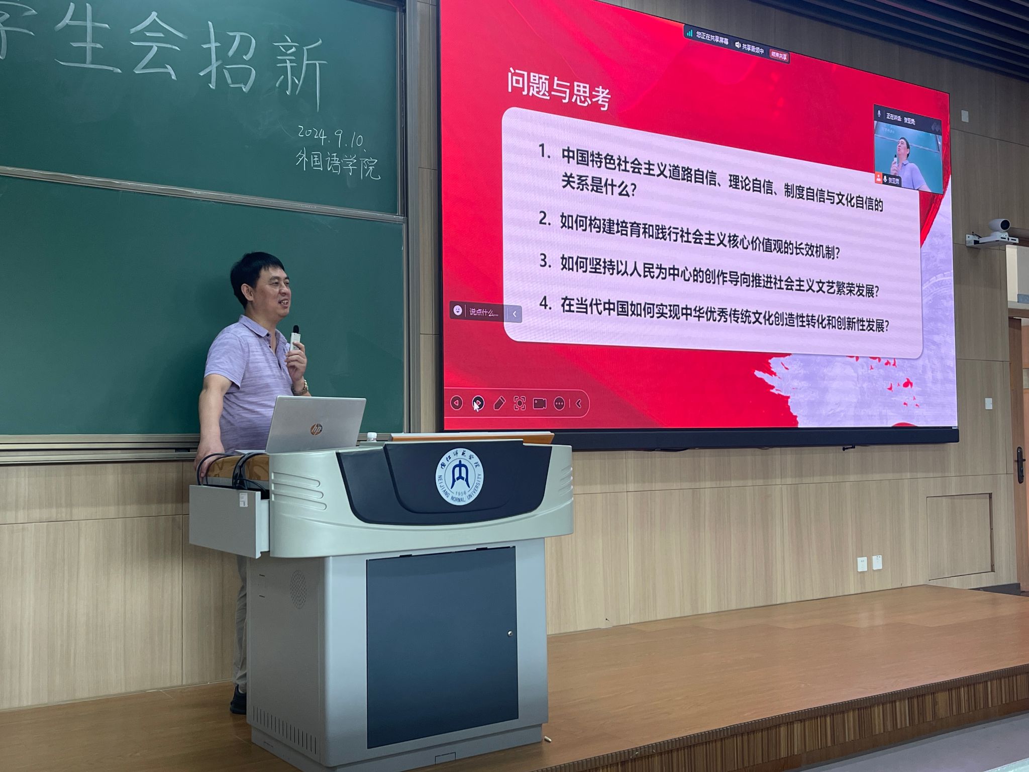 丁华良和泰语教研室主任张文老师进行了专业思想教育及学士学位授予实施细则的解读。孙倩、肖强、张文分别对英语、翻译、泰语专业的人才培养方案进行了具体介绍,让新生们对专业学习方向有了一个主要的了解。