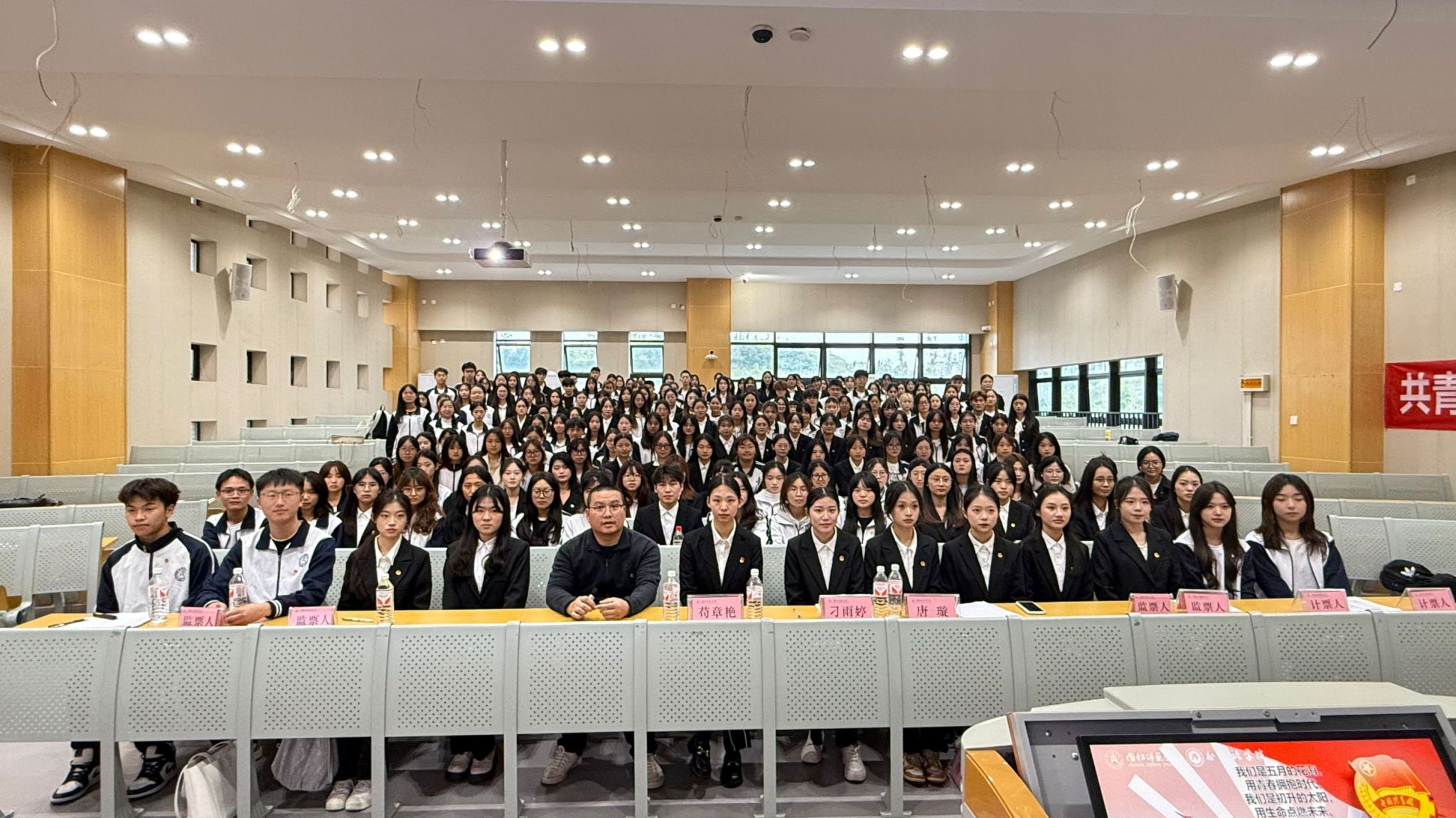 最后,大会举行选举。选举刁雨婷等七名共青团太阳成集团tyc234cc委员会委员,刁雨婷等十名共青团公司第七次代表大会代表,王燃等十三名公司第十次员工代表大会代表。大会还审议表决了第十七届员工会主席团成员及执行主席名单。经过充分酝酿讨论,决定任命龙俊霖等四名同学为员工会主席团成员,唐璇为执行主席。