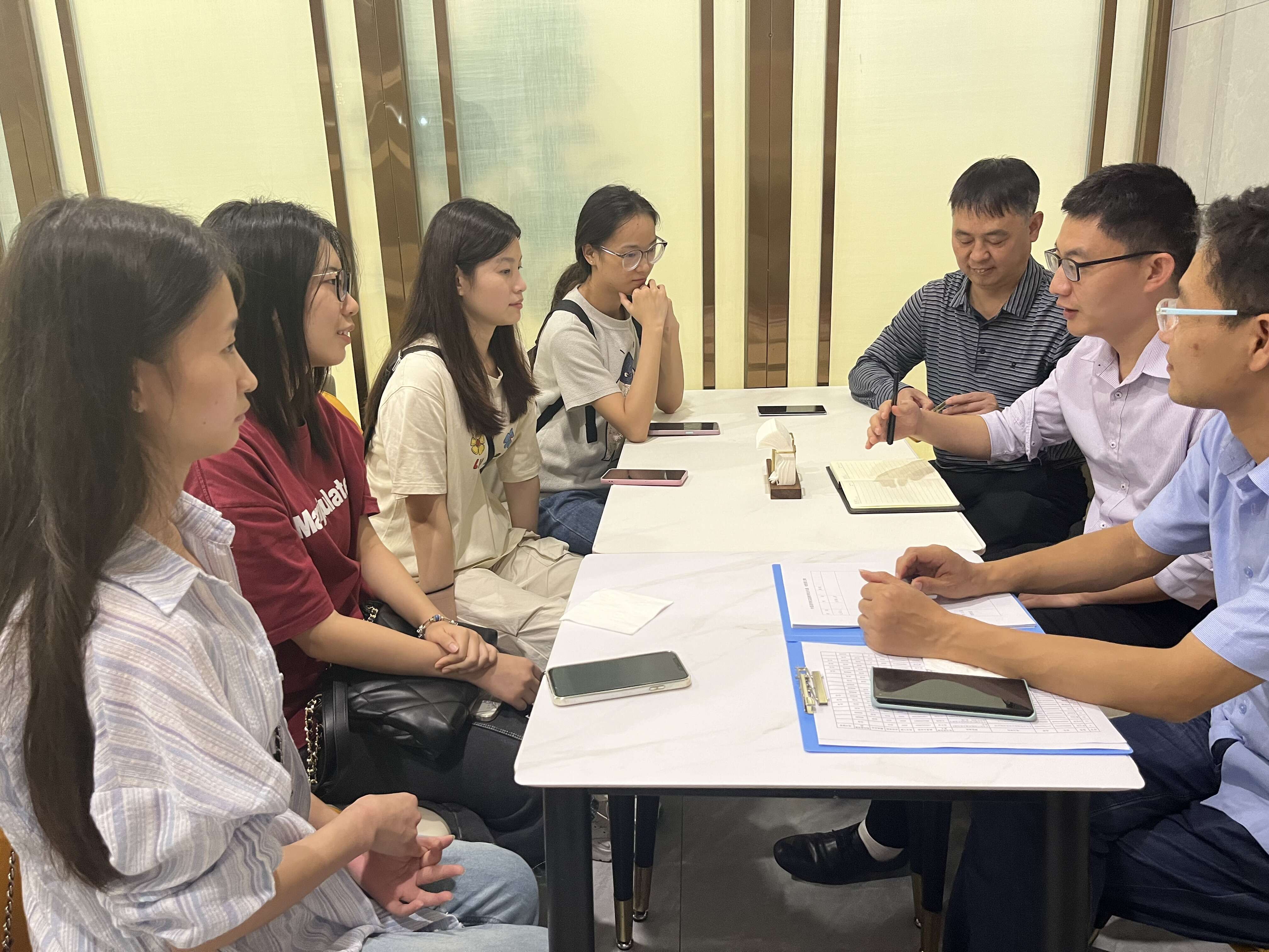在走访活动中,唐德斌看望了在深圳实习的20级6班员工,听取了他们关于企业特色、企业文化、特色项目、实习基地建设和“校企”就业创业合作机制的反馈意见。与多家单位就全媒体人才培养、用人需求、技能要求、实习实训等问题进行了深入交流,并听取了市场和企业部门负责人对于英语和翻译人才的需求与人才培养的意见和建议。