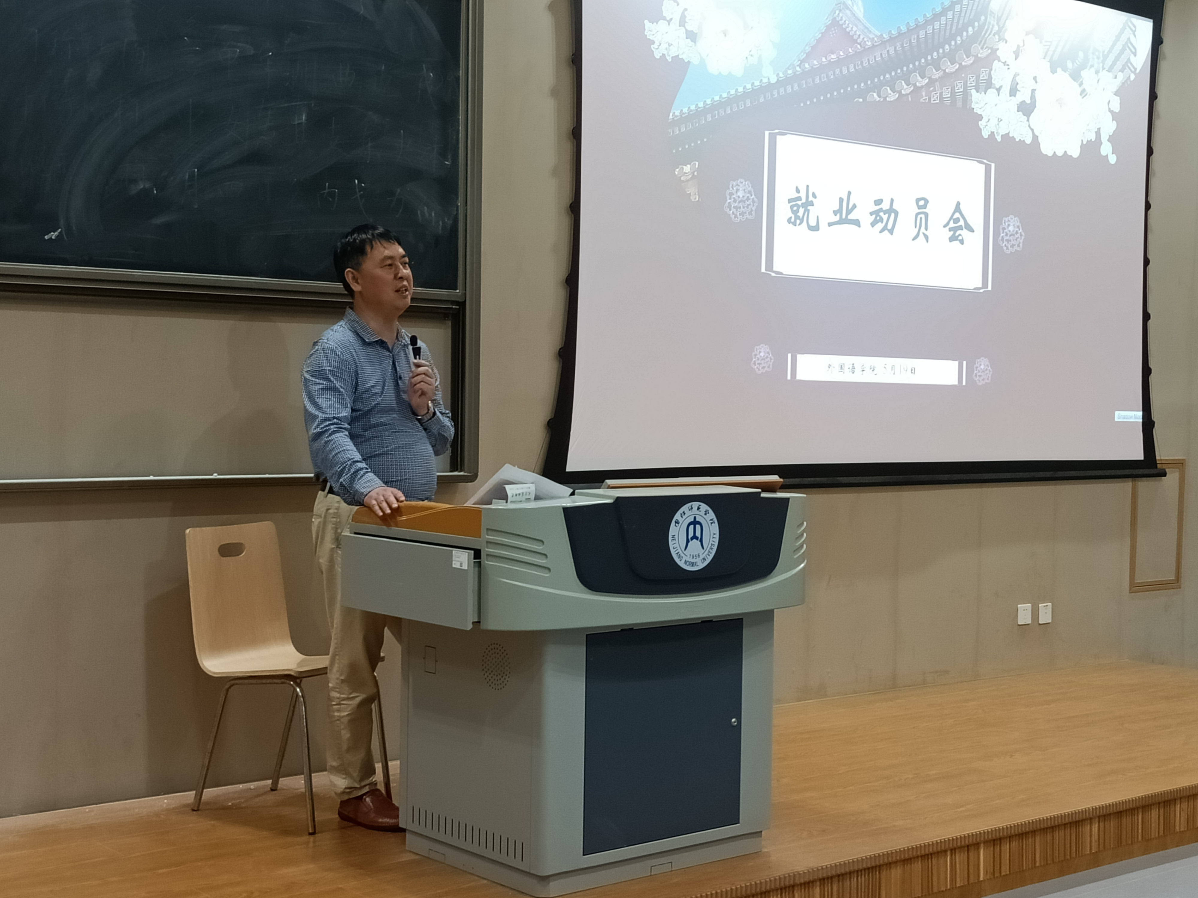 唐德斌分析了今年老员工就业的严峻形势,并结合公司近几年毕业生的就业情况,从学科专业特点及多渠道就业等方面,向员工们作了题为“认清形势,合理定位,提升能力,确保就业”的动员。他指出,现在同学们正处于人生的重要节点,一定要坚定理想信念,做好充分准备,精心准备一份简历,精心打磨一堂课,精心准备一场面试,提升自信心,在5月20日双选会上积极求职。