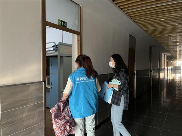 9月9日,接到校园即将封控的通知,公司党委副书记李仰锐、辅导员何珊率先入驻员工宿舍,和员工同吃同住,每天组织在校员工核酸检测,统计上报核酸检测情况和员工健康状况,发放消毒药品并督促员工每天按时消毒。每天晚上深入宿舍逐一排查统计留校员工情况,对员工开展防疫宣传和心理安抚和疏导。最忙的一天,他们只吃了一顿早饭,直到深夜,稍微闲暇下来,用一盒方便面充饥。