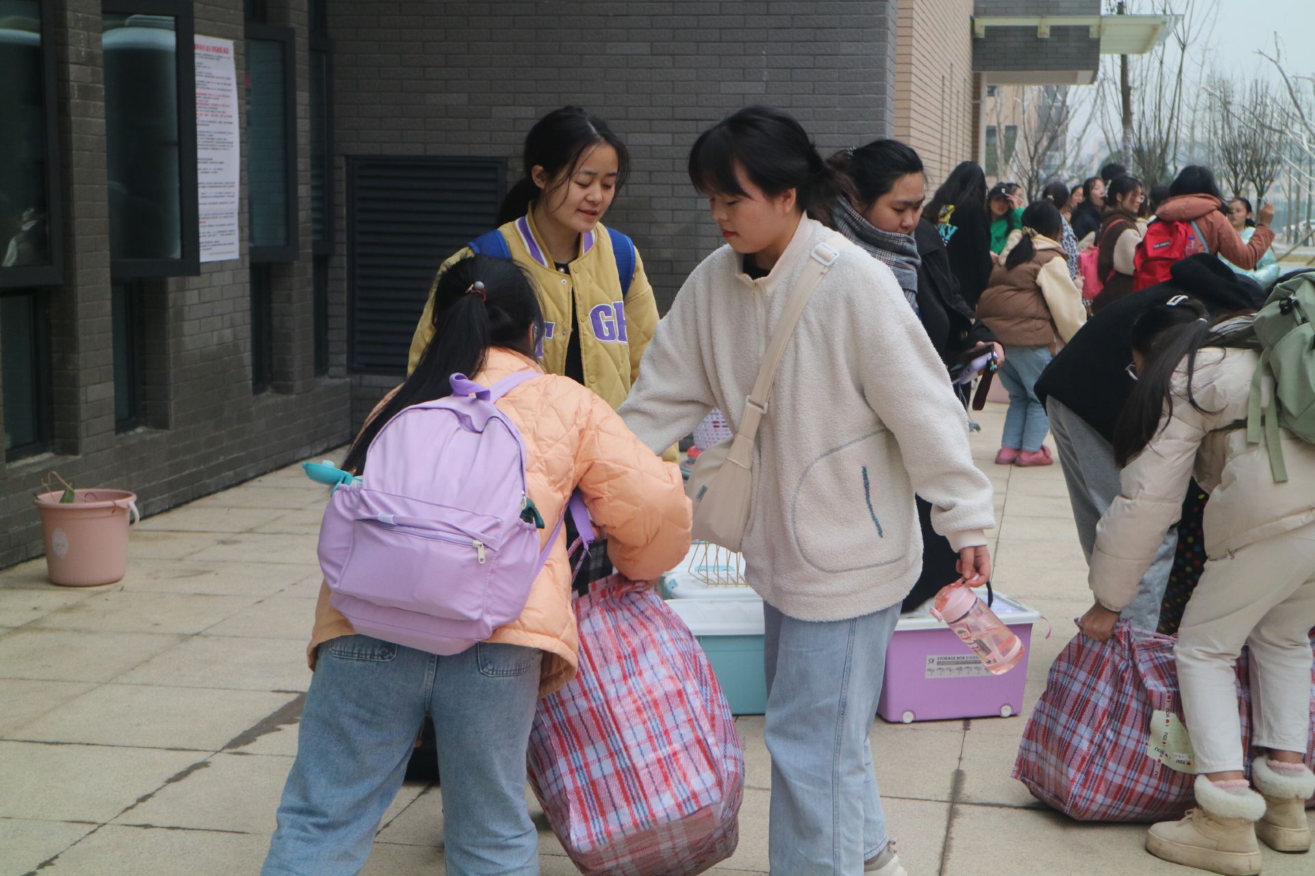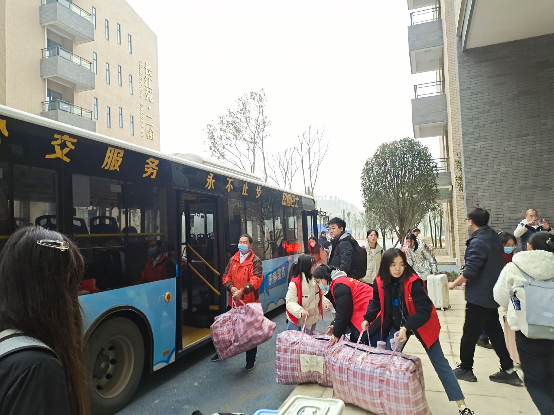 在搬迁过程中,公司为每一辆搬迁车配备了跟车教工志愿者2人,员工志愿者2人,工人1名。1月13日一早,24名教工志愿者早上6点就赶到搬迁位点,组织员工按照预先安排的车次进行行李搬迁,在老校区,后搬的员工帮助先搬的员工把行李抬下楼,在新校区,先搬的员工帮助后搬的员工把行李搬上楼。跟车老师注意在行车过程中员工安全,留意员工在车上是否身体不适,下车时行李是否有遗漏。新校区负责老师主要统筹员工下车后行李疏散,安全等。各宿舍楼下由2-3名志愿者,负责看管员工行李,维持秩序,引导员工到宿舍管理员处办理入住手续。在办公室搬迁过程中,员工志愿者帮助教职工物品打包,物品登记,跟车到新校区整理物品,布置办公室。师生之间相互帮助,相互关心,确保了整个搬迁过程平稳有序。