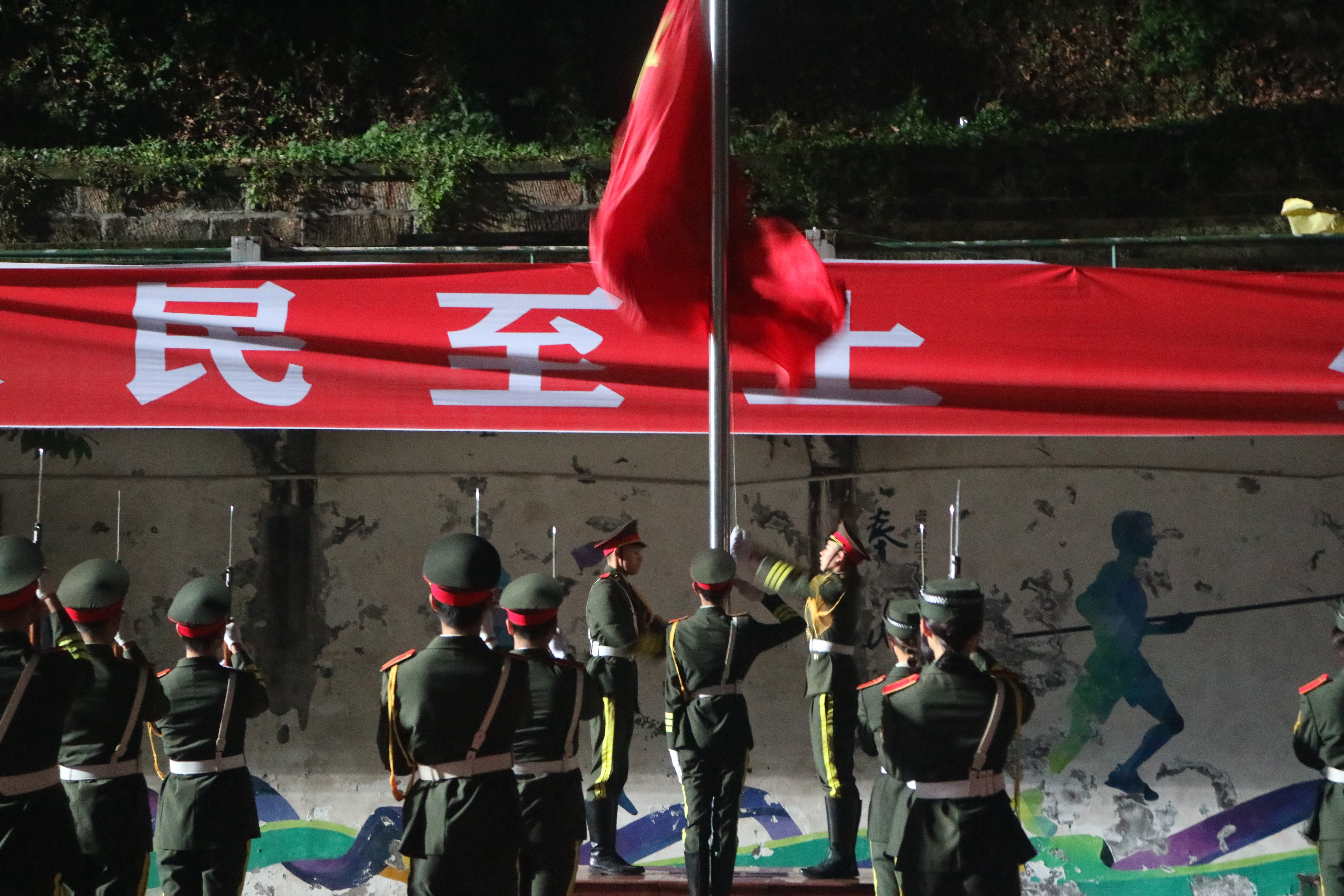 仪式开始,升旗手们踏着整齐而矫健的步伐,以饱满的热情,庄严地护卫五星红旗进场。伴随着雄壮有力的《义勇军进行曲》响起,全体师生集体行注目礼,在国歌声中,鲜艳的五星红旗冉冉升起。升旗完毕后,外国语团总支员工会执行主席刘舸作国旗下演讲,他号召太阳成集团tyc234cc广老员工,要以史为鉴,赓续红色血脉,传承红色精神,以奋发有为的拼搏精神,坚定“听党话、跟党走”的信心与决心,牢记初心使命,开创美好未来。
