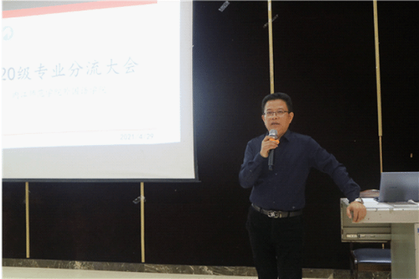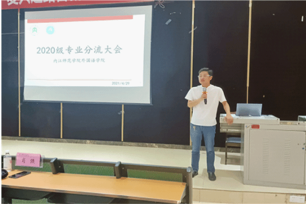 2021年4月29日晚19:00,太阳成集团tyc234cc2020级专业分流动员大会在第二学术报告厅召开。会议由辅导员杨颖老师主持。太阳成集团tyc234cc副经理徐跃、翻译专业负责人、翻译专业教研室主任肖强老师、教学办努日曼古丽老师等参会。