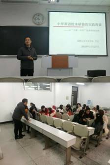 2018年11月27日上午,学员们早早的来到教室等待老师的到来,充分地体现出了学员们对新知识的渴望!为我们开讲的是成都石室外语公司的特级教师尹宏。他通过专题《小学英语"五课一反思"校本研修的探究》给大家介绍了什么是校本研修?为什么要进行校本研修?分析了如何进行校本研修。
