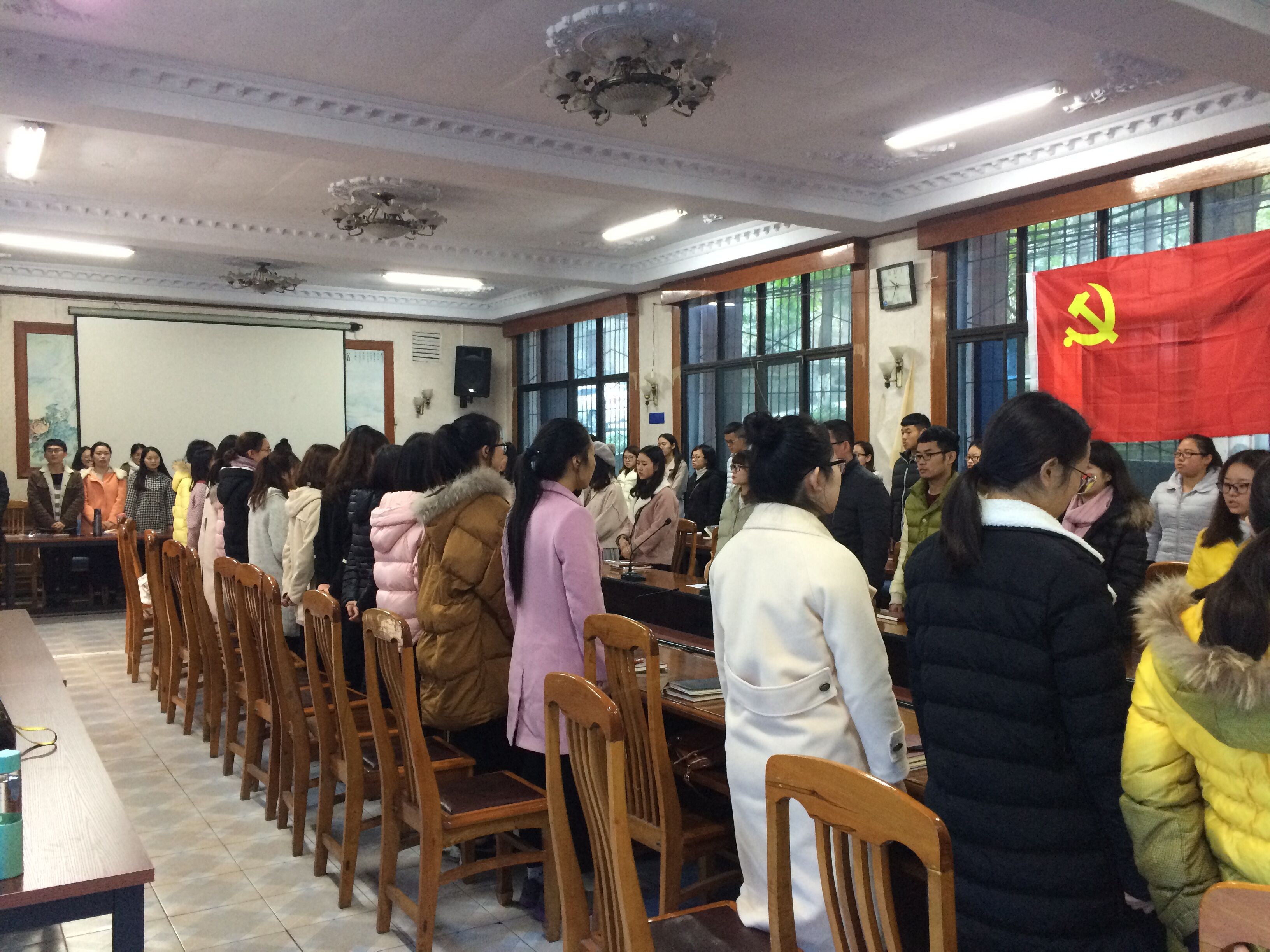 仪式开始之前,员工第三党支部书记李增增主持宣誓仪式。全体党员、预备党员起立,奏唱国际歌。李增增同志选读新发展党员名单,随后领誓人刘承珍带领全体预备党员高举右手,面向党旗,庄严宣誓。监誓人曾乾辉、李增增携全体党员认真聆听。誓词坚定有力,气氛庄严肃穆。随后新党员代表陈露、老党员代表何玉琳分别发言,表达了自己此时此刻的心情和未来学习工作的决心。接着,曾乾辉同志代表公司党总支对新发展的预备党员提出了希望,对全体员工党员提出了更高的要求,在十九大精神的引领下,做时代的弄潮儿。最后,全体党员再次起立,奏唱国歌,宣誓仪式在雄壮的国歌声中结束。
