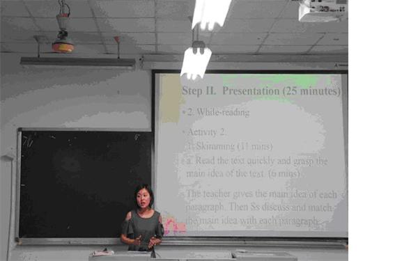 本次验收由教学办韩锋老师组织,于当天晚上7点随机抽选出了20名同学并按抽签顺序进行说课和讲课。从提交的说课稿和试讲教案看,同学们高度重视,精心准备,教案完善,具备了一名英语教师所应具备的教师素质、理论素养和教师基本技能。同学们熟练地使用多媒体呈现形式多样、设计精美的PPT,充分展现自己的教师素质和综合素养,用流利的英语和多姿多彩的肢体语言再现了自己的说课与讲课。而台下同学们的积极性也很高,台上台下时刻保持着互动,现场效果十分好。