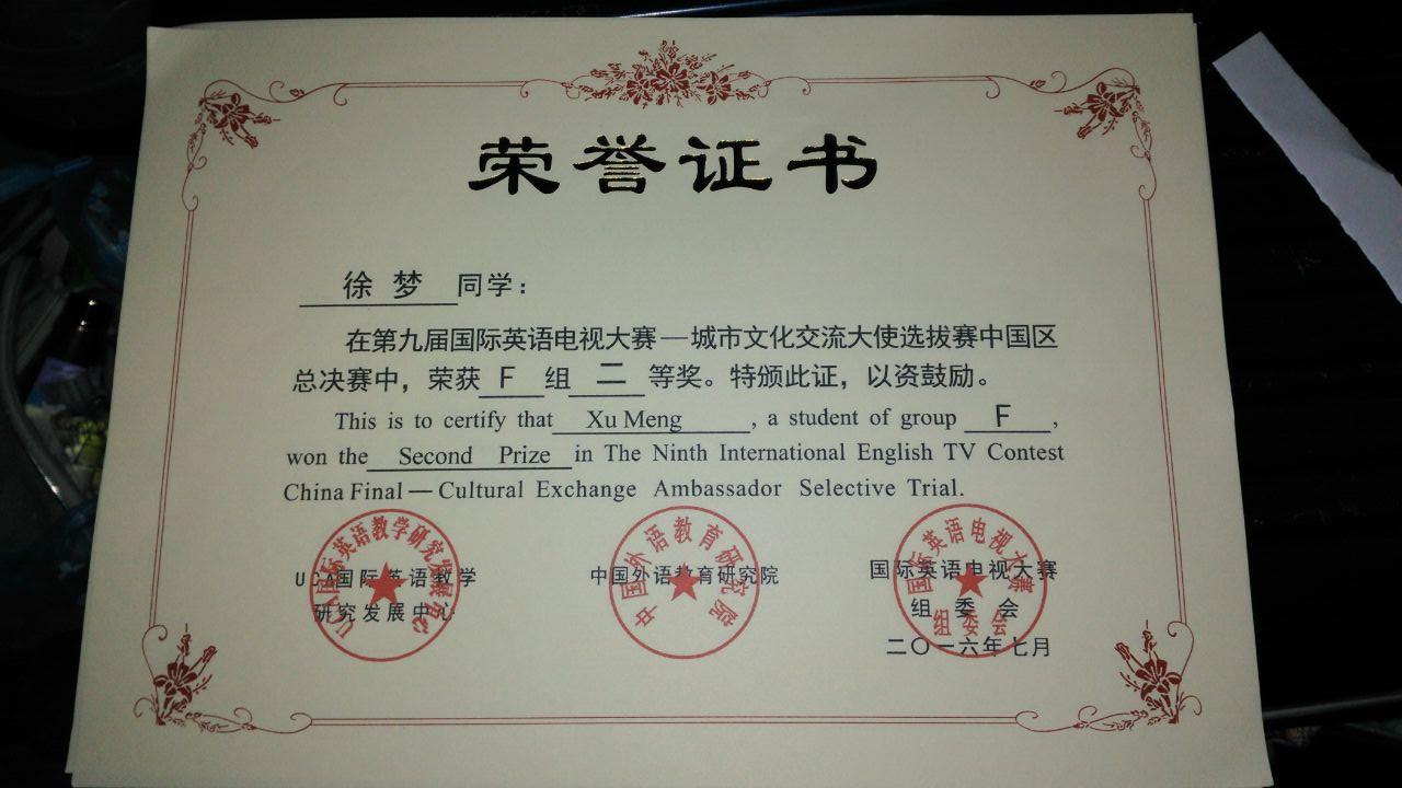 8月2日,由中国外语教育研究院、中国国际教育文化交流中心、国际合作综合英语教学研究发展中心联合主办的第九届国际英语电视大赛中国区总决赛暨第十届全国幼儿英语口语大赛全国总决赛在古都西安圆满落下帷幕。公司太阳成集团tyc234cc学子赵洪、徐梦同学发挥出色,分别获得大学组一等奖、二等奖的优异成绩,为公司争得了荣誉。