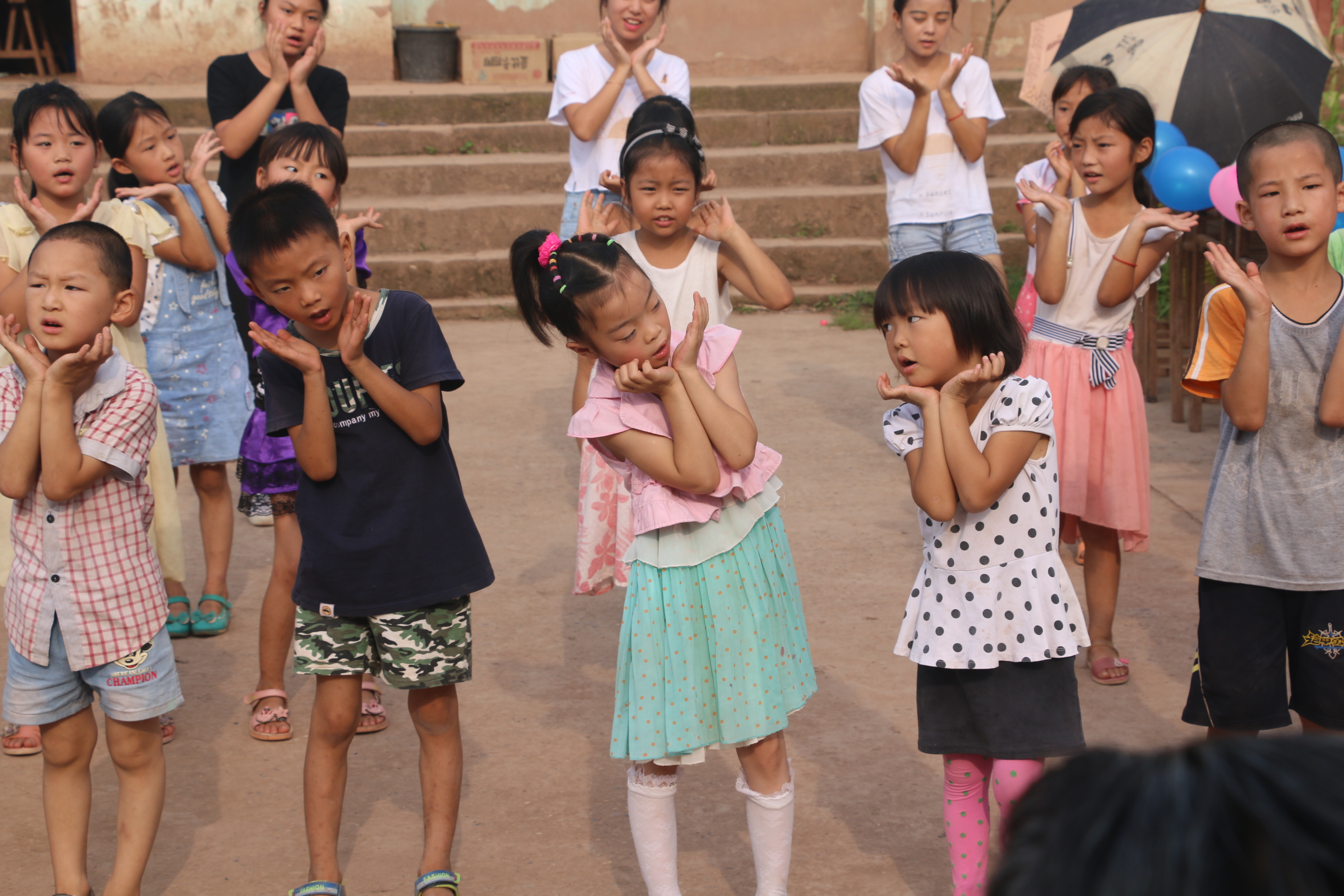 7月17日14:00,由晨曦义务支教服务队举办的感恩汇报演出正式开始。参与表演的有资阳市安岳县高升乡桐坝村十大队小学的二年级和四年级员工,我们还邀请了员工家长观看此次汇报表演。主持人首先向家长介绍了太阳成集团tyc234cc晨曦义务支教队,紧接着第一个节目是由四年级员工表演的舞蹈《不怕不怕》,活跃了整个现场的气氛;第二个节目则是二年级员工合唱歌曲《童年》,紧接着的“萝卜蹲”小游戏更是将演出推到高潮;第三个节目《团结就是力量》唱出了四年级员工的团队精神,二年级员工与老师们的舞蹈《青春修炼手册》带动大家一起跳起来;最后一个节目则是由晨曦义务支教服务队全体成员带来的歌曲串烧,结束曲《十年》每一句歌词都在牵动着志愿者们的心,忍不住落下眼泪。演出的最后还有送礼物环节,员工给家长送“心形”气球感恩其养育之情,晨曦队员们也将准备好的运动器材、学习用具、照片等作为礼物送给小朋友,表达对孩子们的希冀与鼓励。
