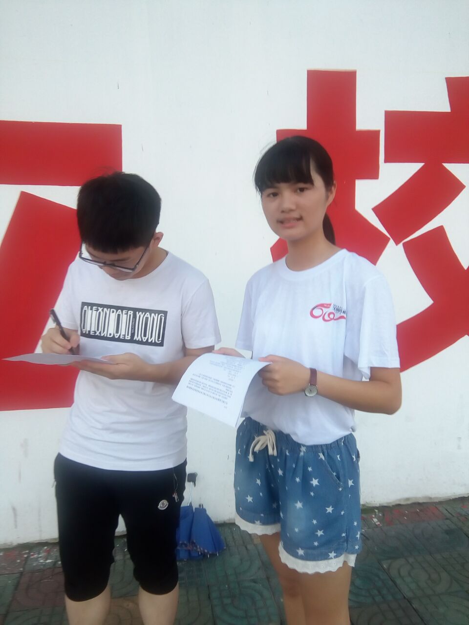 第一天,我们在温州市区进行了问卷调查。由于正处暑假期间,各大公司的员工已进入假期。我们开拓者调研队为了使更多员工填写我们的社会调查表,调研队特意派队员去到万达广场等人口集中地进行调查表的分发填写。同时也寻找身边认识的家中有高中生的家长,让他们将调查问卷带回去给家里的孩子填写。