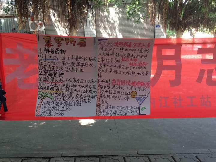 为使老人们充分参与到活动当中来,志愿者们精心设计了“手拉手”的热身小游戏。看着爷爷奶奶们脸上亲切地笑容,志愿者们的心里也是乐开了花。紧接着,周诗艺与吴钰等志愿者也通过口头讲解、海报展示及分发防暑宣传单等方式向老人们展示了夏季防暑食物的制作方法及功效等,赢得了阵阵掌声。另外,我们也贴心地为老人们送上了一杯杯暖心的花茶,让老人们在这个炎热的下午感受到丝丝凉爽,他们脸上洋溢着的笑容就是对晨曦队员们辛苦付出与努力的最大肯定。
