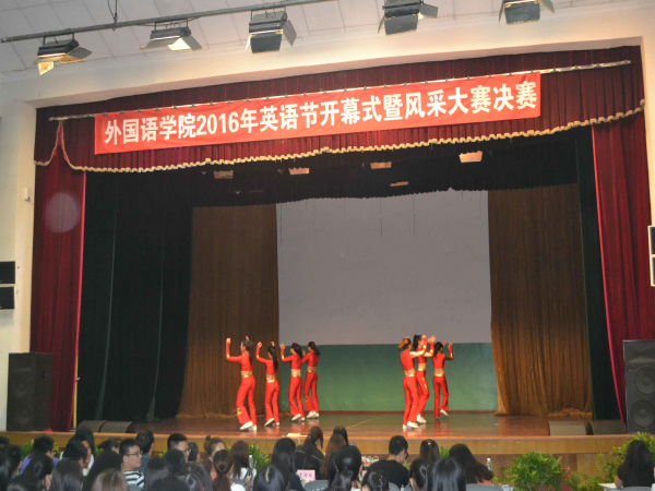 一段激情洋溢、充满着青春活力的开场舞为我们拉开了本次风采大赛决赛的帷幕。经过初赛、复赛的层层比拼,共有十名选手(组合)闯入本晚决赛。第一轮是自我介绍环节,十位选手依次用英文流利地做了自我介绍。他们中的一些着重于自己的爱好,一些偏向于家乡的美景美食,一些侧重于生活趣事;他们纯正的英语发音,稳重的台风都赢得了观众们的阵阵掌声。