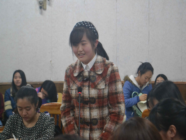 本次座谈会由心理俱乐部干事寿芬芬主持,在近5分钟的讨论之后,她邀请了几个同学作为代表进行了发言。首先员工会主席张弘翼就此话题表达了自己的看法,他表示,道德会影响一个人为人处世的准则,并以最近的“假疫苗”为例,指出道德就是一杆秤,教我们衡量对与错;而副主席何文婧则强调,每个人都有自己的底线,呼吁大家明辨善恶,切忌道德捆绑;体育部部长黄开发则从另一个角度出发,倡议同学们从身边小事做起,做一个有道德的人;秘书处干事贾明浣则从自身实际出发,表示道德在心中,弘扬要行动,呼吁大家多关注身边的人。