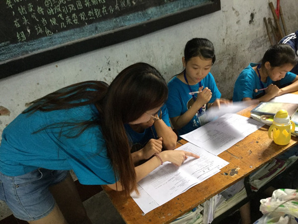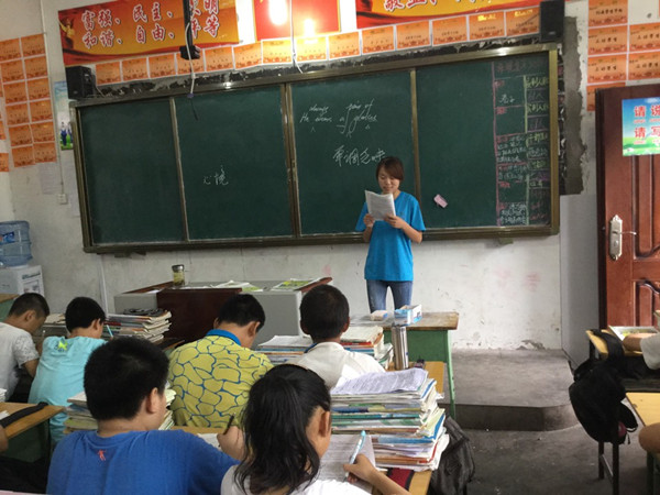 大家认真学习,活学活用。在当天下午,团队成员就开展了一堂生动的英语课。看着同学们那么渴望知识的眼神,再多的准备和辛苦也是值得的。7月13日上午,所谓“温故而知新”,对于涉及昨天所教知识的试卷,我们团队队员们就逐一地再次走向每个孩子的身边,询问他们有什么不懂的地方,好及时地给予纠正。我们又给孩子们上了一次语文课,在这三伏天的季节里,汗水是止不住地流淌,但与此同时咱们支教的热情也在不断的增强。我们始终相信每一个孩子都应该被宠爱,我们不奢求能带给他们有多么久远的影响,只求以后当他们回忆起2015年的夏天的时候嘴角是在微笑的。
