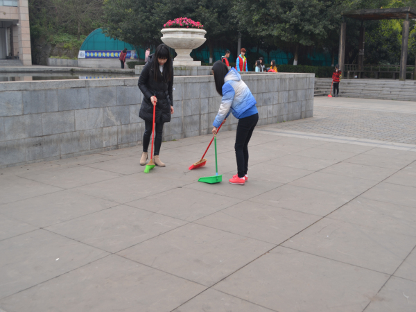 12:30,100余名志愿者带着扫帚等清洁工具在西区图书馆集合,经简单分工后,志愿者们兵分两路分别对大千广场和东桐路沱江沿岸绿化带进行了清扫。三月的春风依旧刺骨,同学们的劳动热情却分毫不减。大家相互合作,积极配合,不怕脏不怕累,捡垃圾扫灰尘,划区域拔草,忙得不亦乐乎,用实际行动响应着“志愿内师·一起走”的号召。很快,同学们的劳动就让大千广场和东桐路沱江沿岸绿化带焕然一新,同时他们自己也成为了这个城市一道亮丽的风景线。